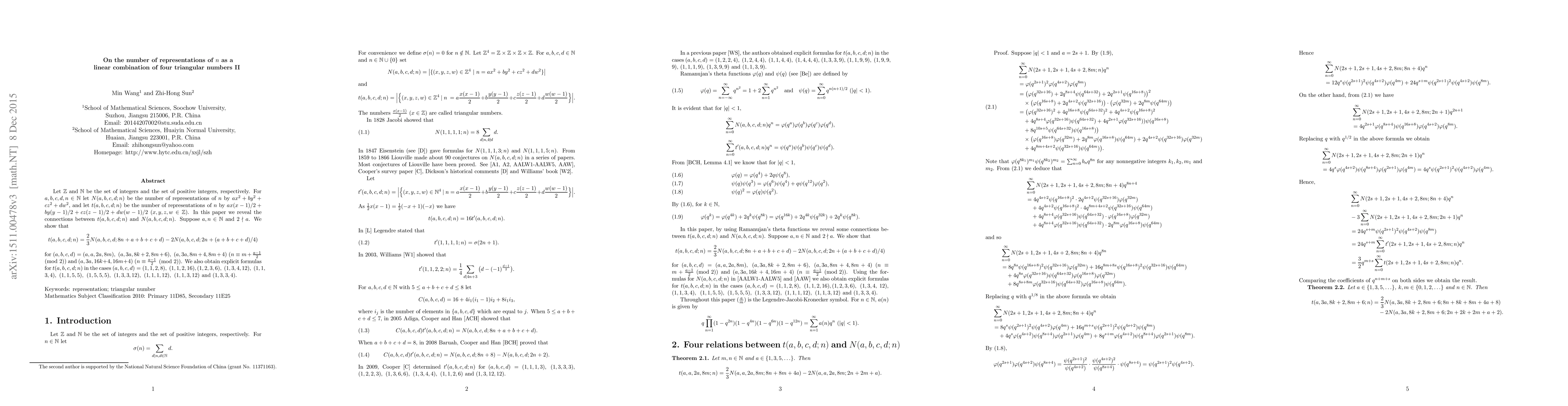 Let $\Bbb Z$ and $\Bbb N$ be the set of integers and the set of positive integers, respectively. For $a,b,c,d,n\in\Bbb N$ let $N(a,b,c,d;n)$ be the number of representations of $n$ by $ax^2+by^2+cz^2+dw^2$, and let $t(a,b,c,d;n)$ be the number of representations of $n$ by $ax(x-1)/2+by(y-1)/2+cz(z-1)/2 +dw(w-1)/2$ $(x,y,z,w\in\Bbb Z$). In this paper we reveal the connections between $t(a,b,c,d;n)$ and $N(a,b,c,d;n)$. Suppose $a,n\in\Bbb N$ and $2\nmid a$. We show that $$t(a,b,c,d;n)=\frac 23N(a,b,c,d;8n+a+b+c+d)-2N(a,b,c,d;2n+(a+b+c+d)/4)$$ for $(a,b,c,d)= (a,a,2a,8m),\ (a,3a,8k+2,8m+6),\ (a,3a,8m+4,8m+4)\ (n\equiv m+\frac{a-1}2 \pmod 2)$ and $(a,3a,16k+4,16m+4)\ (n\equiv \frac{a-1}2\pmod 2)$. We also obtain explicit formulas for $t(a,b,c,d;n)$ in the cases $(a,b,c,d)=(1,1,2,8),\ (1,1,2,16),(1,2,3,6),\ (1,3,4,12),\ (1,1,$ $3,4),\ (1,1,5,5),\ (1,5,5,5),\ (1,3,3,12),\ (1,1,1,12),\ (1,1,3,12)$ and $(1,3,3,4)$.