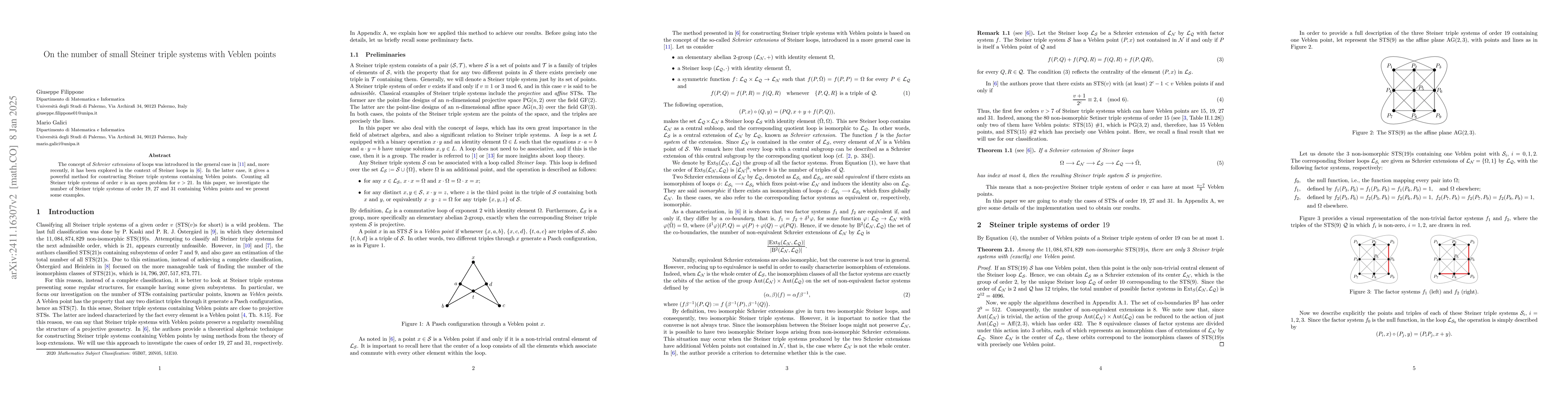 This paper explores the enumeration of Steiner triple systems of orders 19, 27, and 31 that include Veblen points, utilizing Schreier extensions of loops, and presents some specific examples of these systems. The broader challenge of counting such systems for orders greater than 21 remains unsolved.