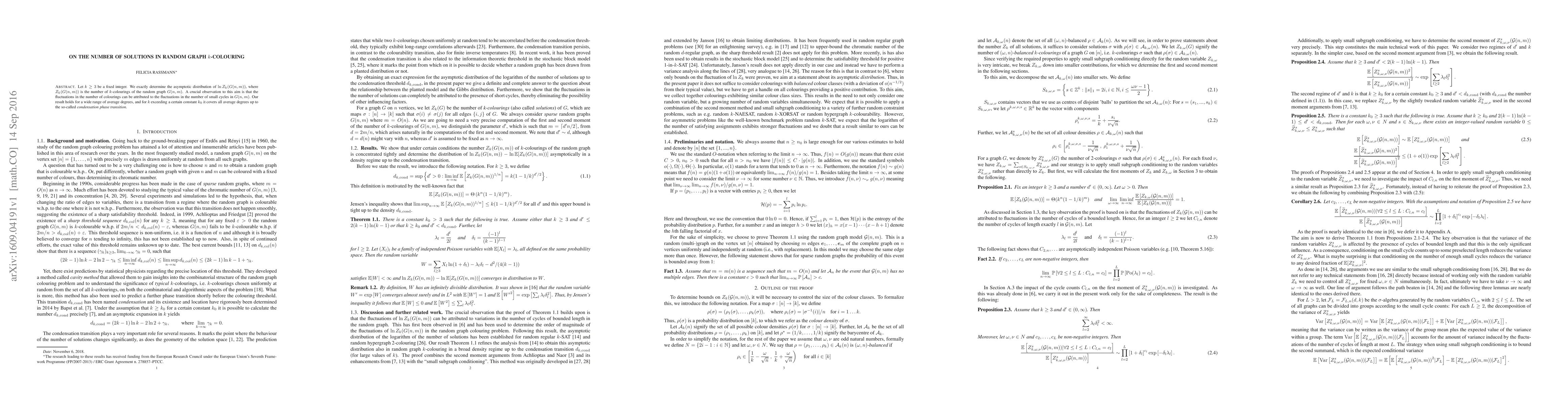 This paper studies the number of solutions in random graph k-colouring, showing that fluctuations can be attributed to small cycles in the graph, with results holding for a range of average degrees and covering all degrees up to a certain point.