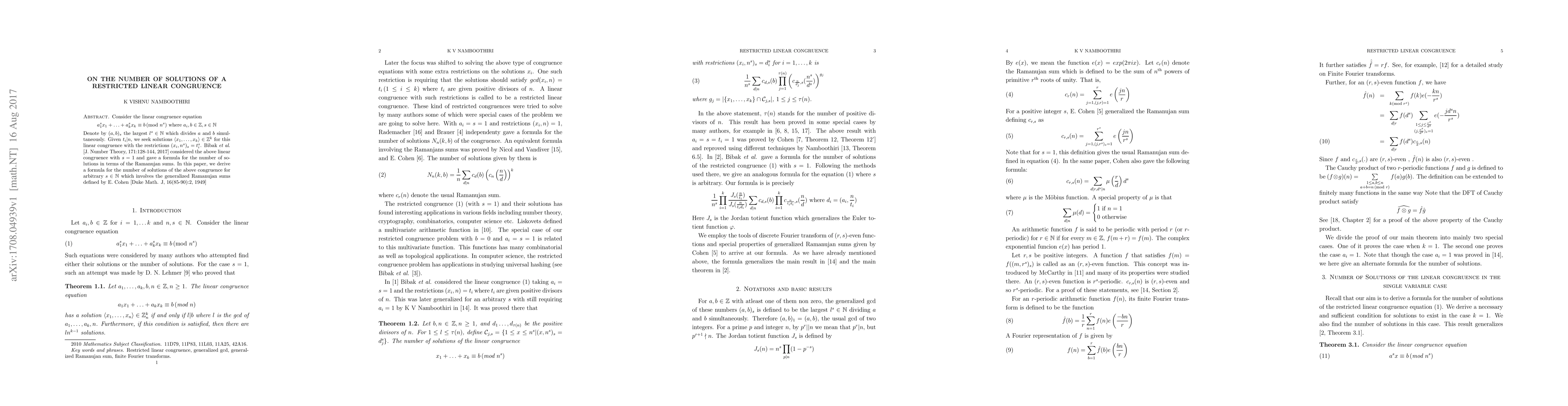 This paper derives a formula for the number of solutions to a restricted linear congruence equation involving generalized Ramanujan sums for arbitrary s in mathematics.