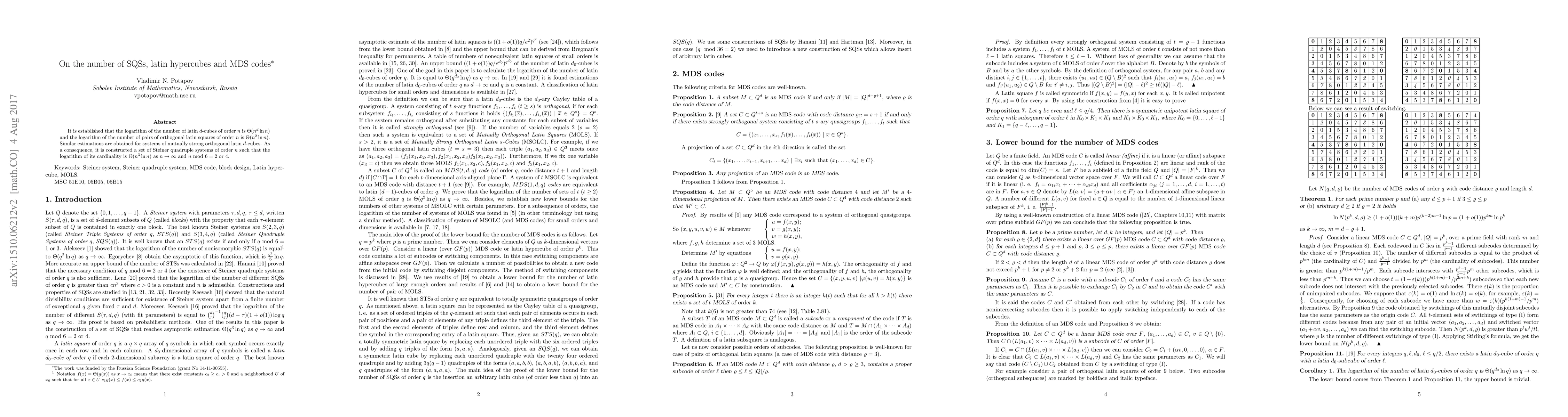 It is established that the logarithm of the number of latin $d$-cubes of order $n$ is $\Theta(n^{d}\ln n)$ and the logarithm of the number of pairs of orthogonal latin squares of order $n$ is $\Theta(n^2\ln n)$. Similar estimations are obtained for systems of mutually strong orthogonal latin $d$-cubes. As a consequence, it is constructed a set of Steiner quadruple systems of order $n$ such that the logarithm of its cardinality is $\Theta(n^3\ln n)$ as $n\rightarrow\infty$ and $n\ {\rm mod}\ 6= 2\ {\rm or}\ 4$.