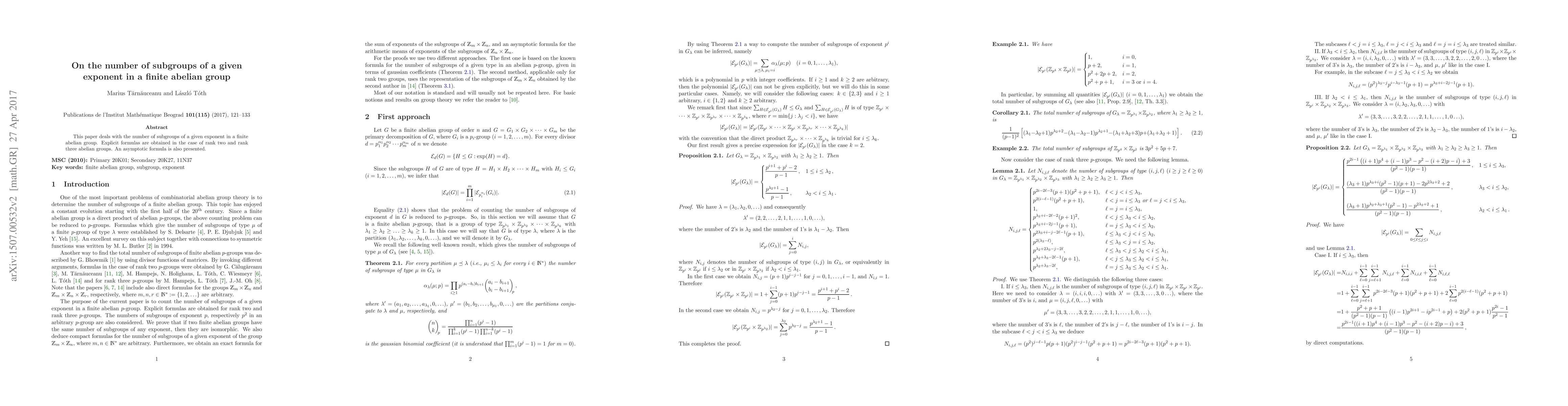 This paper deals with the number of subgroups of a given exponent in a finite abelian group. Explicit formulas are obtained in the case of rank two and rank three abelian groups. An asymptotic formula is also presented.