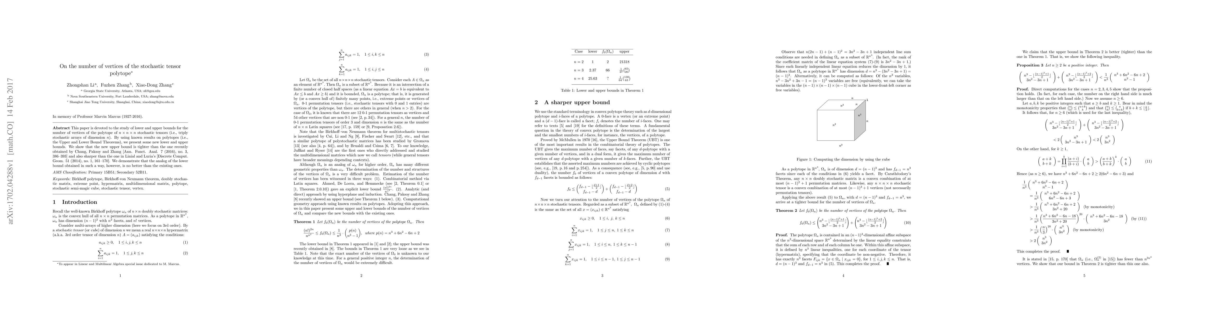 This paper investigates new lower and upper bounds for the number of vertices in the polytope of $n\times n\times n$ stochastic tensors, presenting a tighter upper bound compared to recent results by Chang, Paksoy, and Zhang, and Linial and Luria. However, the new lower bound does not surpass existing ones.