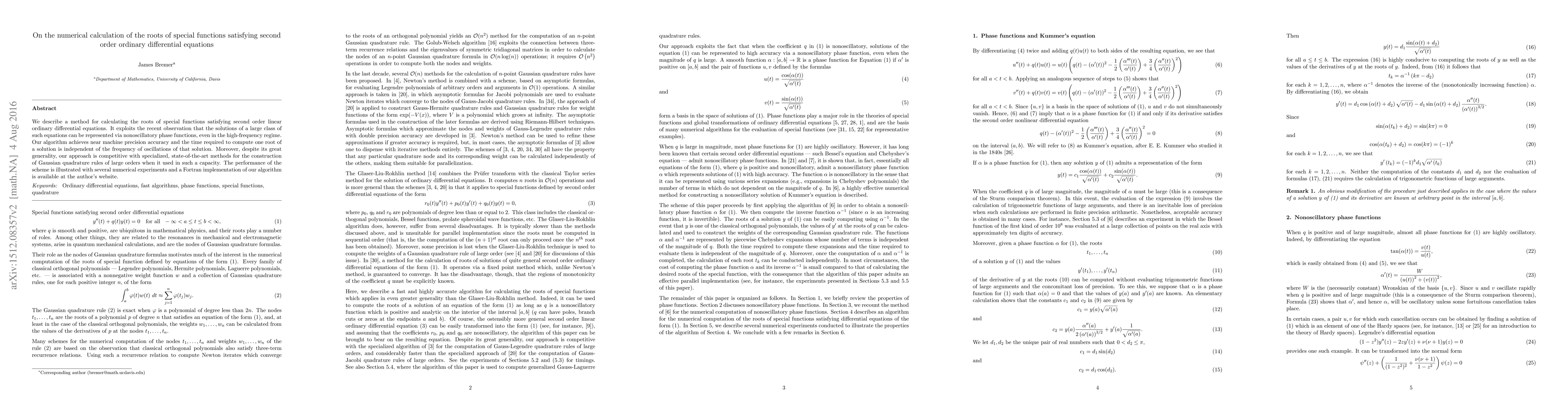 Researchers developed an efficient method for calculating roots of special functions that satisfy second-order ordinary differential equations, achieving near machine precision accuracy with a time complexity independent of frequency.