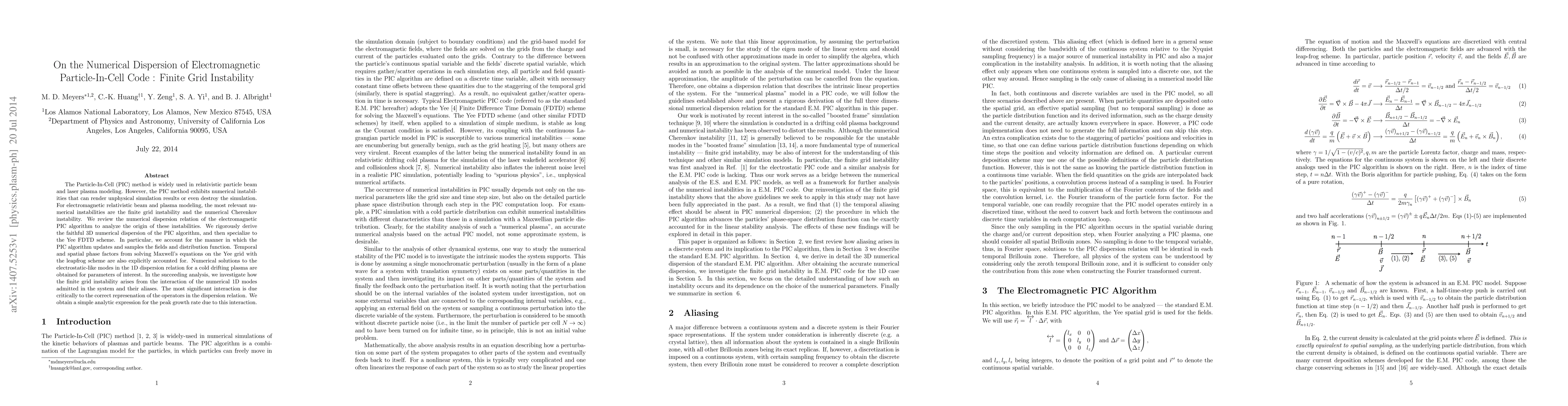 This paper reviews the numerical dispersion relation of electromagnetic Particle-In-Cell (PIC) methods to analyze the finite grid instability, deriving the faithful 3D dispersion and investigating its interaction with aliases, leading to a simple analytic expression for the peak growth rate.
