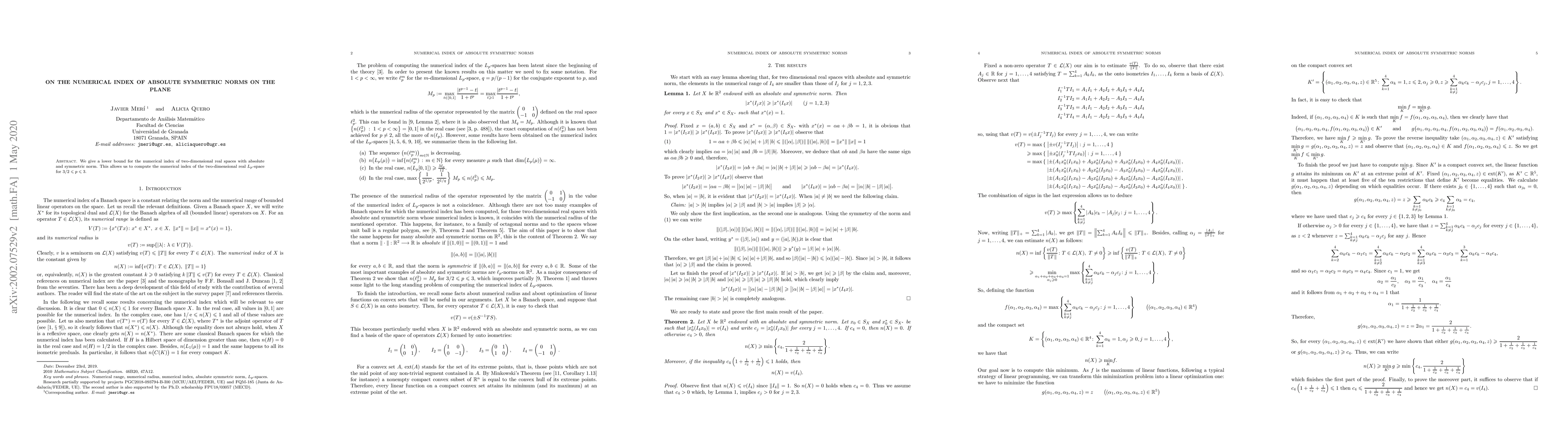 Researchers provide a lower bound for the numerical index of 2D real spaces with absolute symmetric norms, enabling computation of Lp-spaces for specific p-values.