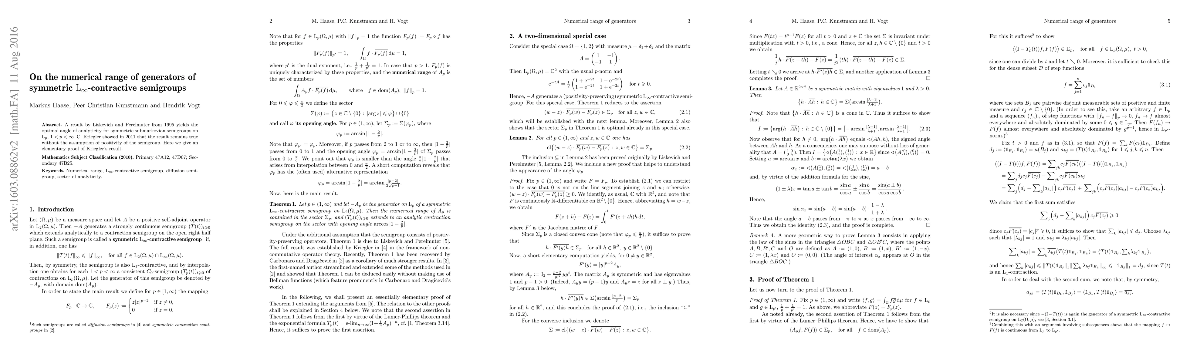 A result by Liskevich and Perelmuter from 1995 yields the optimal angle of analyticity for symmetric submarkovian semigroups on $L_p$, $1