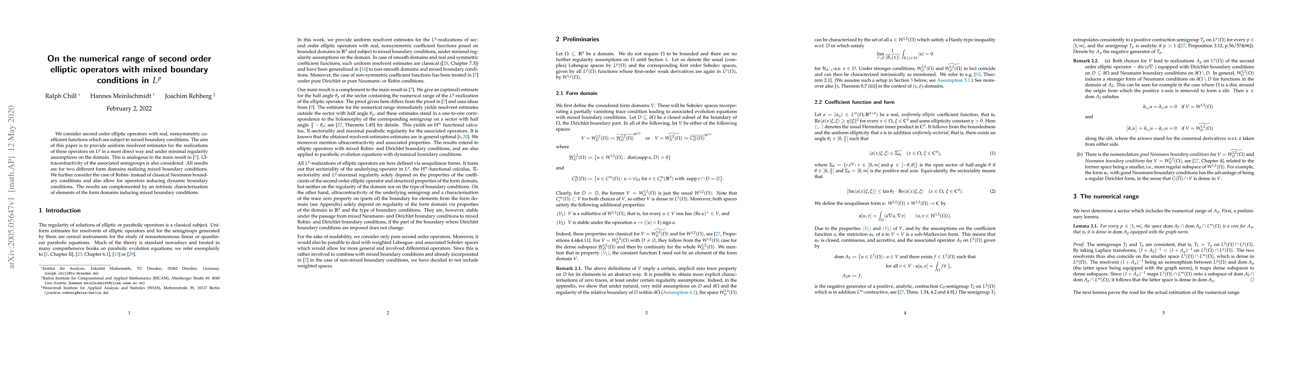 This paper provides uniform resolvent estimates for second-order elliptic operators with mixed boundary conditions on L^p spaces, offering a direct approach to analyzing the numerical range of these operators.