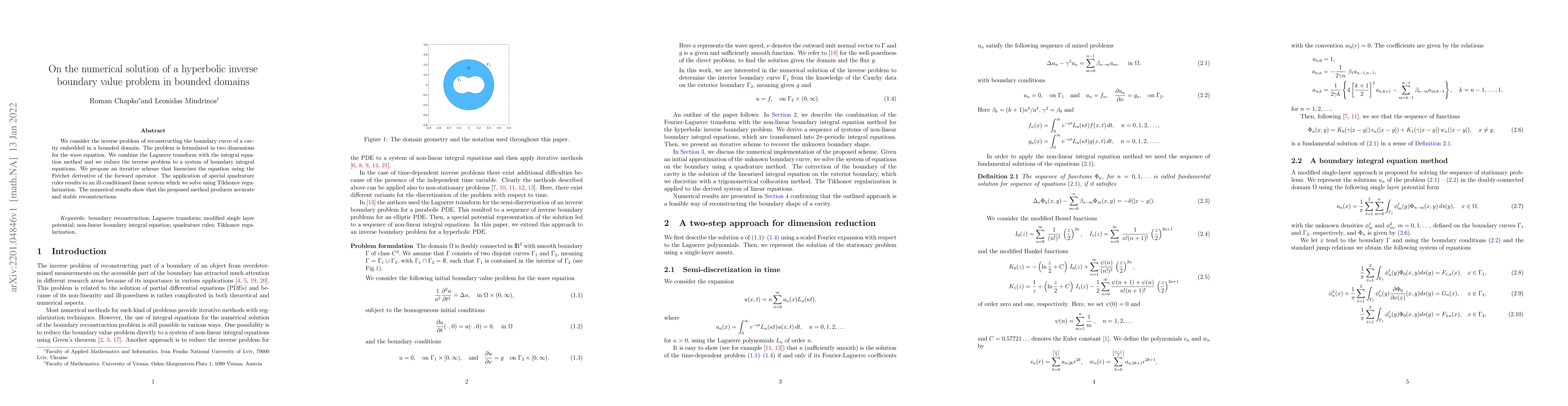 Researchers propose a numerical method to solve an inverse problem in wave equation physics, accurately reconstructing a cavity's boundary in bounded domains using the Laguerre transform and Tikhonov regularization.