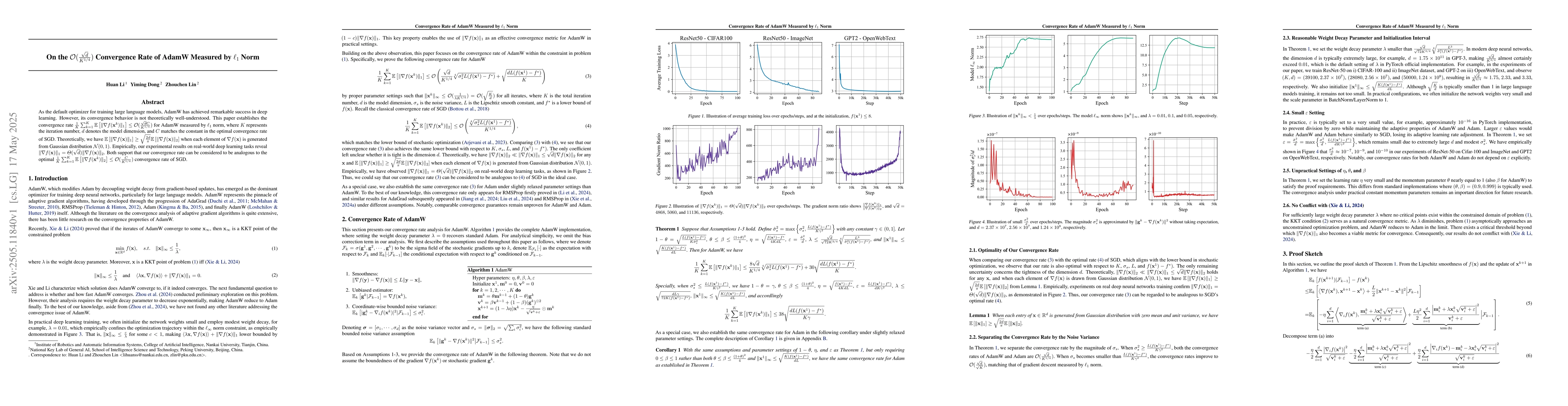 The paper presents a novel convergence rate analysis for AdamW using $\ell_1$ norm, linking it to SGD's optimal rate.