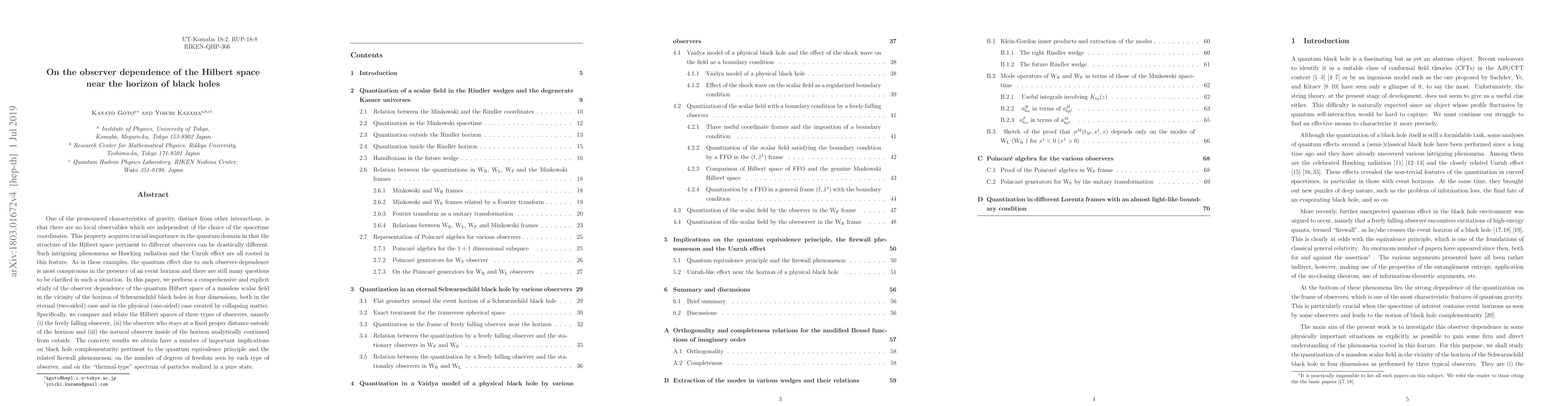 One of the pronounced characteristics of gravity, distinct from other interactions, is that there are no local observables which are independent of the choice of the spacetime coordinates. This property acquires crucial importance in the quantum domain in that the structure of the Hilbert space pertinent to different observers can be drastically different. Such intriguing phenomena as the Hawking radiation and the Unruh effect are all rooted in this feature. As in these examples, the quantum effect due to such observer-dependence is most conspicuous in the presence of an event horizon and there are still many questions to be clarified in such a situation. In this paper, we perform a comprehensive and explicit study of the observer dependence of the quantum Hilbert space of a massless scalar field in the vicinity of the horizon of the Schwarzschild black holes in four dimensions, both in the eternal (two-sided) case and in the physical (one-sided) case created by collapsing matter. Specifically, we compare and relate the Hilbert spaces of the three types of observers, namely (i) the freely falling observer, (ii) the observer who stays at a fixed proper distance outside of the horizon and (iii) the natural observer inside of the horizon analytically continued from outside. The concrete results we obtain have a number of important implications on black hole complementarity pertinent to the quantum equivalence principle and the related firewall phenomenon, on the number of degrees of freedom seen by each type of observer, and on the "thermal-type" spectrum of particles realized in a pure state.