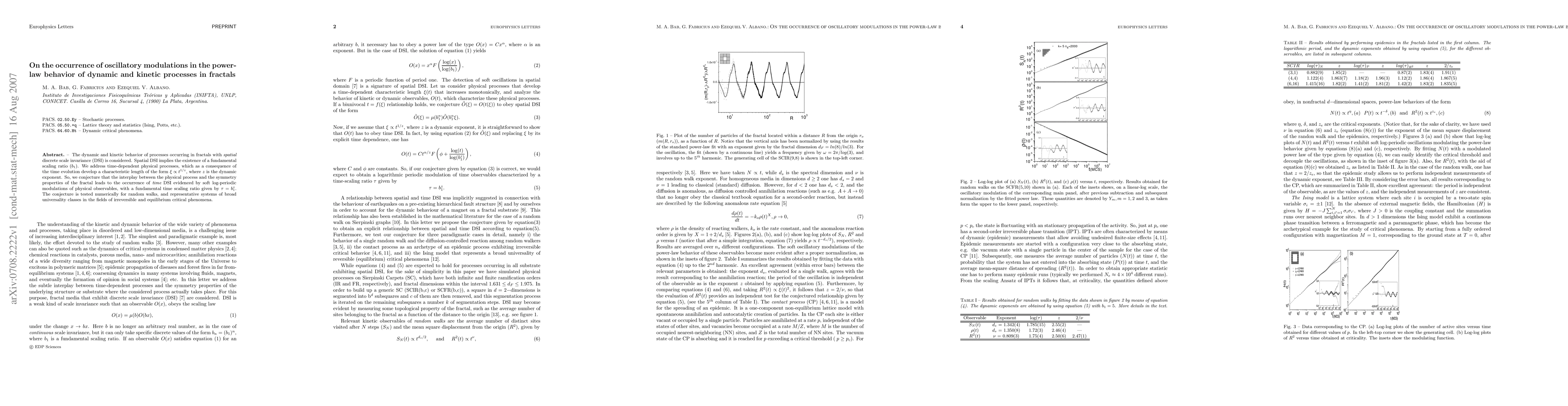 The dynamic and kinetic behavior of processes occurring in fractals with spatial discrete scale invariance (DSI) is considered. Spatial DSI implies the existence of a fundamental scaling ratio (b_1). We address time-dependent physical processes, which as a consequence of the time evolution develop a characteristic length of the form $\xi \propto t^{1/z}$, where z is the dynamic exponent. So, we conjecture that the interplay between the physical process and the symmetry properties of the fractal leads to the occurrence of time DSI evidenced by soft log-periodic modulations of physical observables, with a fundamental time scaling ratio given by $\tau = b_1 ^z$. The conjecture is tested numerically for random walks, and representative systems of broad universality classes in the fields of irreversible and equilibrium critical phenomena.