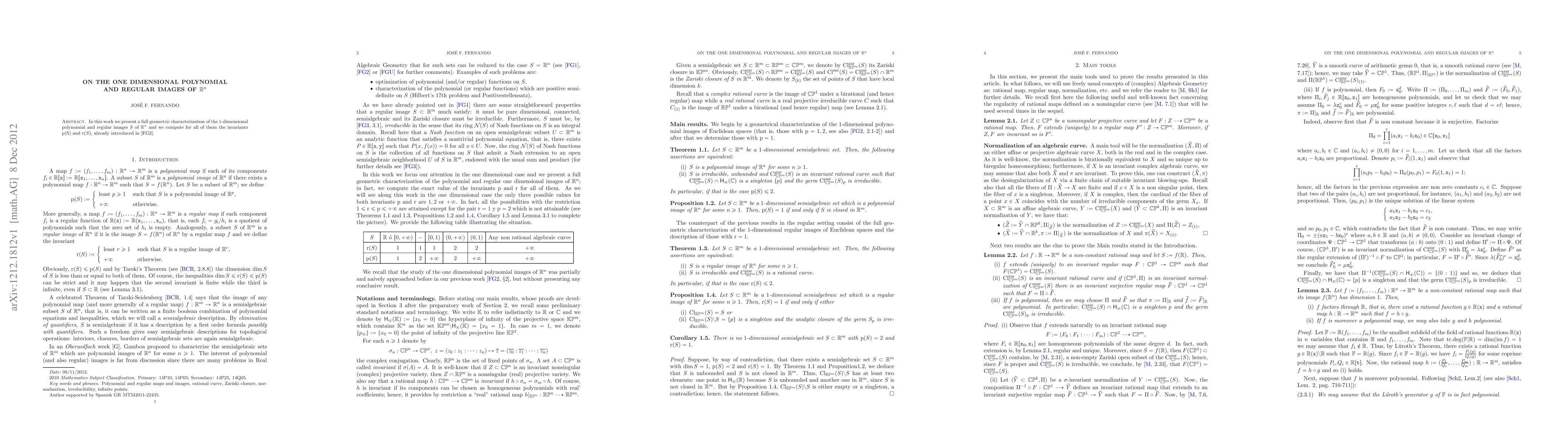 This paper provides a complete geometric characterization of 1-dimensional polynomial and regular images $S$ of $\R^n$, and computes the invariants ${\rm p(S)}$ and ${\rm r}(S)$ for all such images.