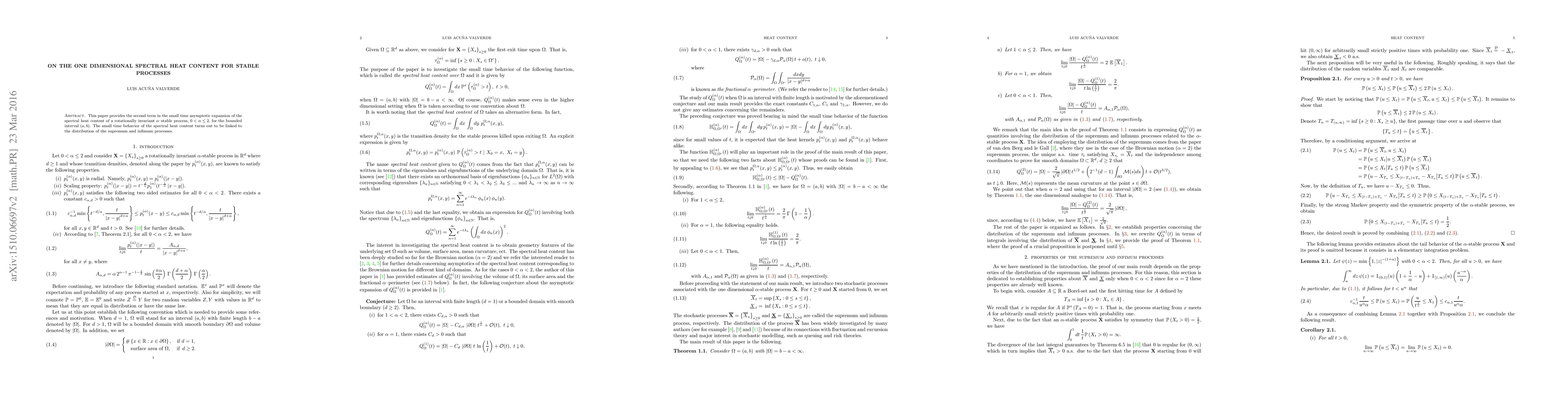 This paper determines the second term in the small time asymptotic expansion of the spectral heat content for $0<\alpha \leq 2$ rotationally invariant $\alpha$-stable processes in the interval $(a,b)$, revealing a connection to the distribution of the supremum and infimum processes.
