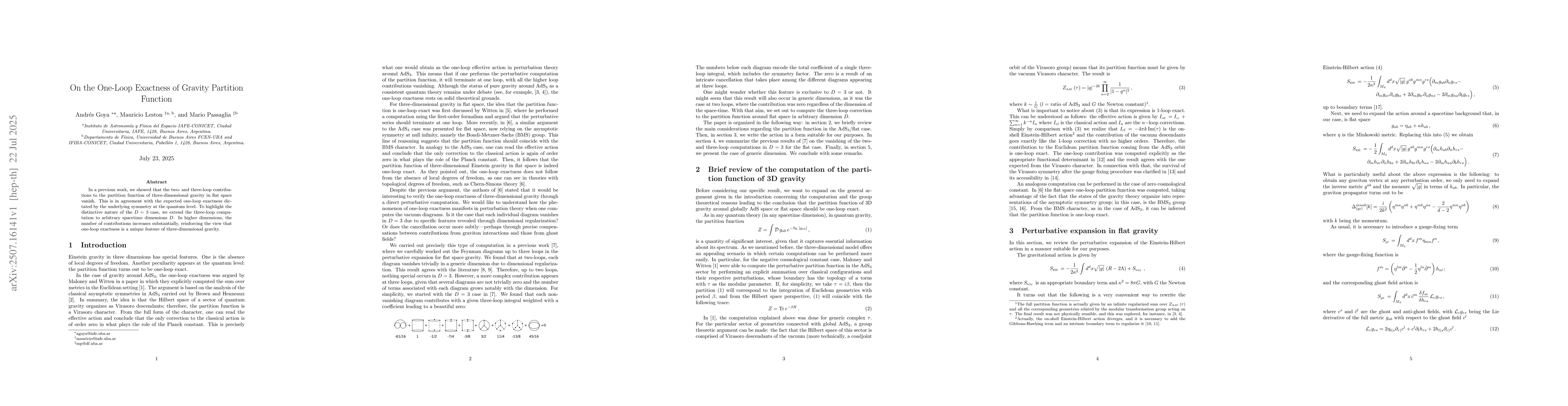 This research emphasizes the unique one-loop exactness of three-dimensional gravity's partition function, contrasting it with higher dimensions where such exactness does not hold, thus providing insights into the special nature of D = 3 gravity.
