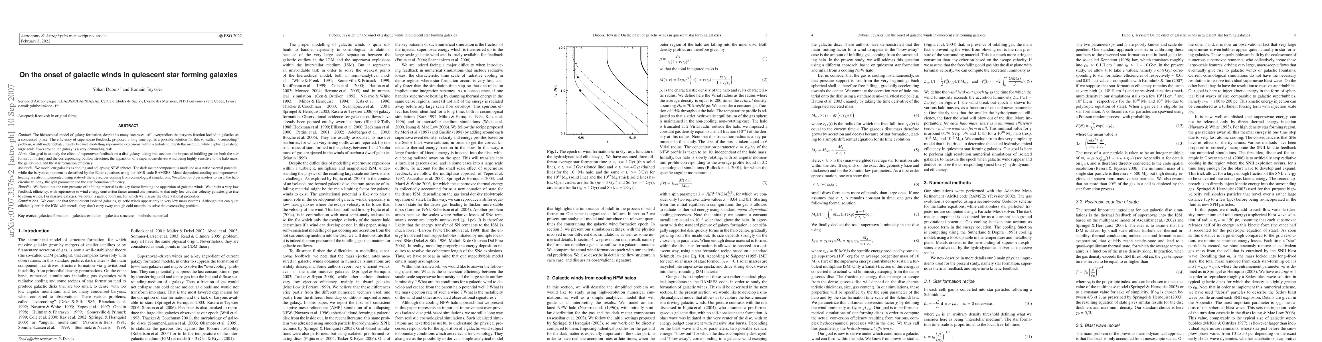 This study investigates the onset of galactic winds in quiescent star-forming galaxies, finding that supernovae feedback is highly dependent on halo mass, galaxy spin, and star formation efficiency. The research concludes that low-mass galaxies with low circular velocities are the only ones to develop strong winds, while massive galaxies exhibit a galactic fountain instead.