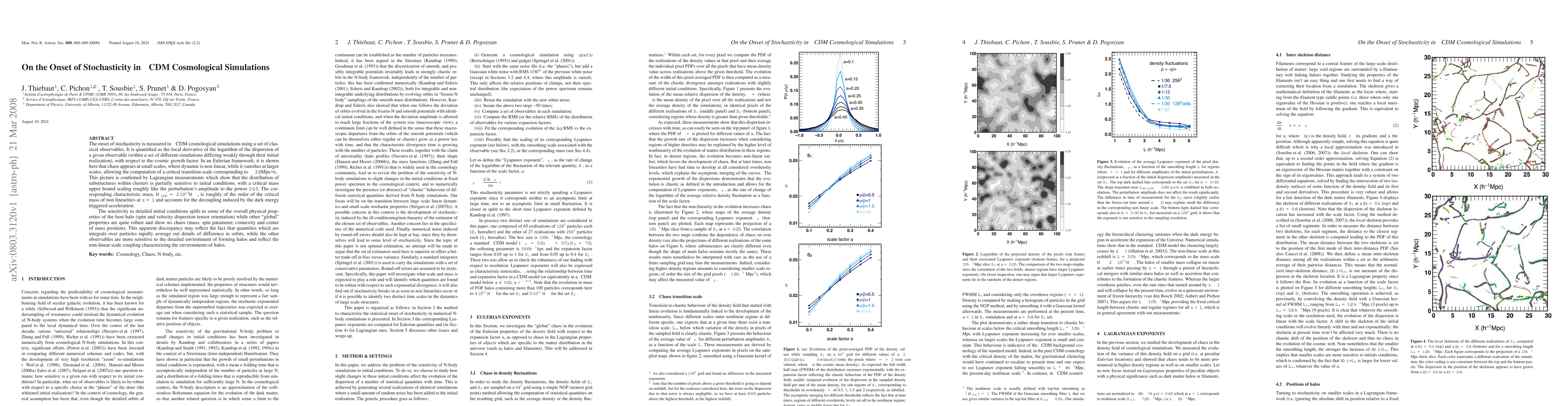 The onset of stochasticity is measured in $\Lambda$CDM cosmological simulations using a set of classical observables. It is quantified as the local derivative of the logarithm of the dispersion of a given observable (within a set of different simulations differing weakly through their initial realization), with respect to the cosmic growth factor. In an Eulerian framework, it is shown here that chaos appears at small scales, where dynamic is non-linear, while it vanishes at larger scales, allowing the computation of a critical transition scale corresponding to ~ 3.5 Mpc/h. This picture is confirmed by Lagrangian measurements which show that the distribution of substructures within clusters is partially sensitive to initial conditions, with a critical mass upper bound scaling roughly like the perturbation's amplitude to the power 0.15. The corresponding characteristic mass, $M_{\rm crit}=2 10^{13} M_{\odot}$, is roughly of the order of the critical mass of non linearities at z=1 and accounts for the decoupling induced by the dark energy triggered acceleration. The sensitivity to detailed initial conditions spills to some of the overall physical properties of the host halo (spin and velocity dispersion tensor orientation) while other "global" properties are quite robust and show no chaos (mass, spin parameter, connexity and center of mass position). This apparent discrepancy may reflect the fact that quantities which are integrals over particles rapidly average out details of difference in orbits, while the other observables are more sensitive to the detailed environment of forming halos and reflect the non-linear scale coupling characterizing the environments of halos.