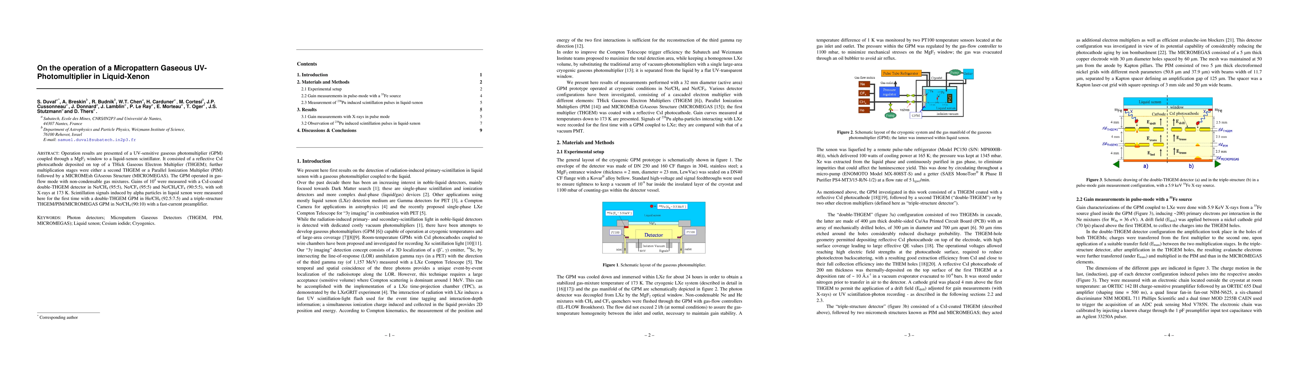 Operation results are presented of a UV-sensitive gaseous photomultiplier (GPM) coupled through a MgF2 window to a liquid-xenon scintillator. It consisted of a reflective CsI photocathode deposited on top of a THick Gaseous Electron Multiplier (THGEM); further multiplication stages were either a second THGEM or a Parallel Ionization Multiplier (PIM) followed by a MICROMEsh GAseous Structure (MICROMEGAS). The GPM operated in gas-flow mode with non-condensable gas mixtures. Gains of 10^4 were measured with a CsI-coated double-THGEM detector in Ne/CH4 (95:5), Ne/CF4 (95:5) and Ne/CH4/CF4 (90:5:5), with soft X-rays at 173 K. Scintillation signals induced by alpha particles in liquid xenon were measured here for the first time with a double-THGEM GPM in He/CH4 (92.5:7.5) and a triple-structure THGEM/PIM/MICROMEGAS GPM in Ne/CH4 (90:10) with a fast-current preamplifier.