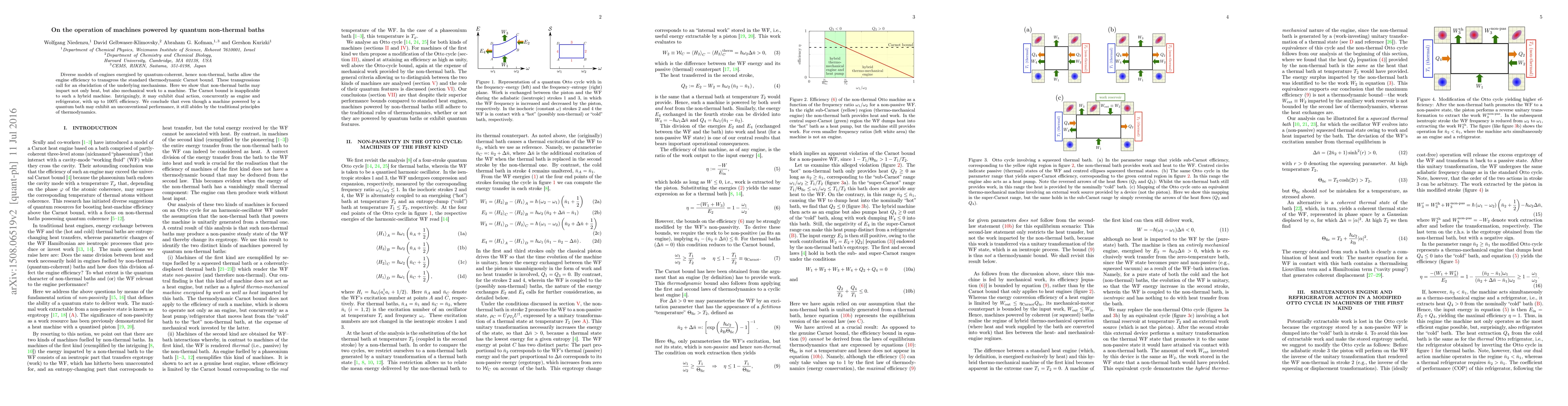 Diverse models of engines energised by quantum-coherent, hence non-thermal, baths allow the engine efficiency to transgress the standard thermodynamic Carnot bound. These transgressions call for an elucidation of the underlying mechanisms. Here we show that non-thermal baths may impart not only heat, but also mechanical work to a machine. The Carnot bound is inapplicable to such a hybrid machine. Intriguingly, it may exhibit dual action, concurrently as engine and refrigerator, with up to 100% efficiency. We conclude that even though a machine powered by a quantum bath may exhibit an unconventional performance, it still abides by the traditional principles of thermodynamics.