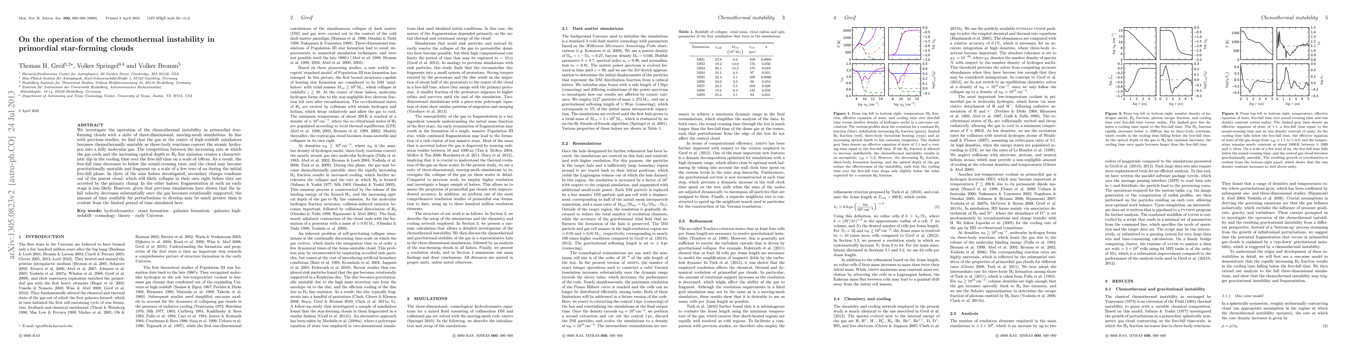 We investigate the operation of the chemothermal instability in primordial star-forming clouds with a suite of three-dimensional, moving-mesh simulations. In line with previous studies, we find that the gas at the centre of high-redshift minihaloes becomes chemothermally unstable as three-body reactions convert the atomic hydrogen into a fully molecular gas. The competition between the increasing rate at which the gas cools and the increasing optical depth to H2 line emission creates a characteristic dip in the cooling time over the free-fall time on a scale of 100 au. As a result, the free-fall time decreases to below the sound-crossing time, and the cloud may become gravitationally unstable and fragment on a scale of a few tens of au during the initial free-fall phase. In three of the nine haloes investigated, secondary clumps condense out of the parent cloud, which will likely collapse in their own right before they are accreted by the primary clump. In the other haloes, fragmentation at such an early stage is less likely. However, given that previous simulations have shown that the infall velocity decreases substantially once the gas becomes rotationally supported, the amount of time available for perturbations to develop may be much greater than is evident from the limited period of time simulated here.