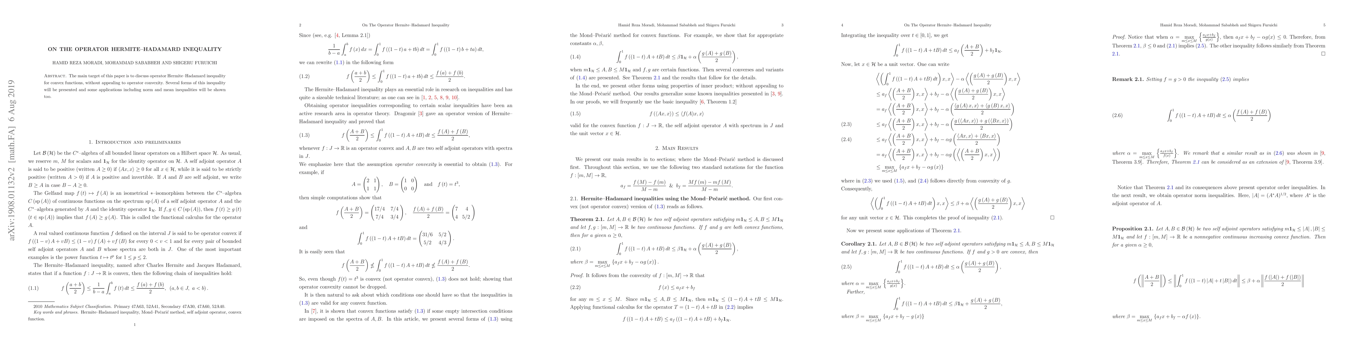 The main target of this paper is to discuss operator Hermite--Hadamard inequality for convex functions, without appealing to operator convexity. Several forms of this inequality will be presented and some applications including norm and mean inequalities will be shown too.