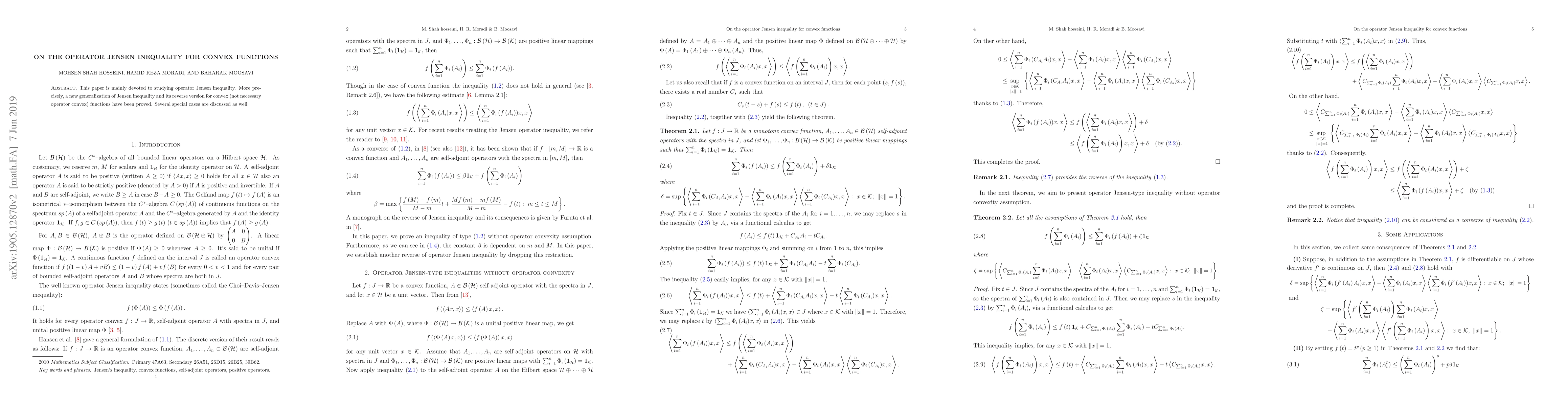 This paper presents a new generalization of the operator Jensen inequality and its reverse for convex functions, not necessarily operator convex, along with discussions on several special cases.