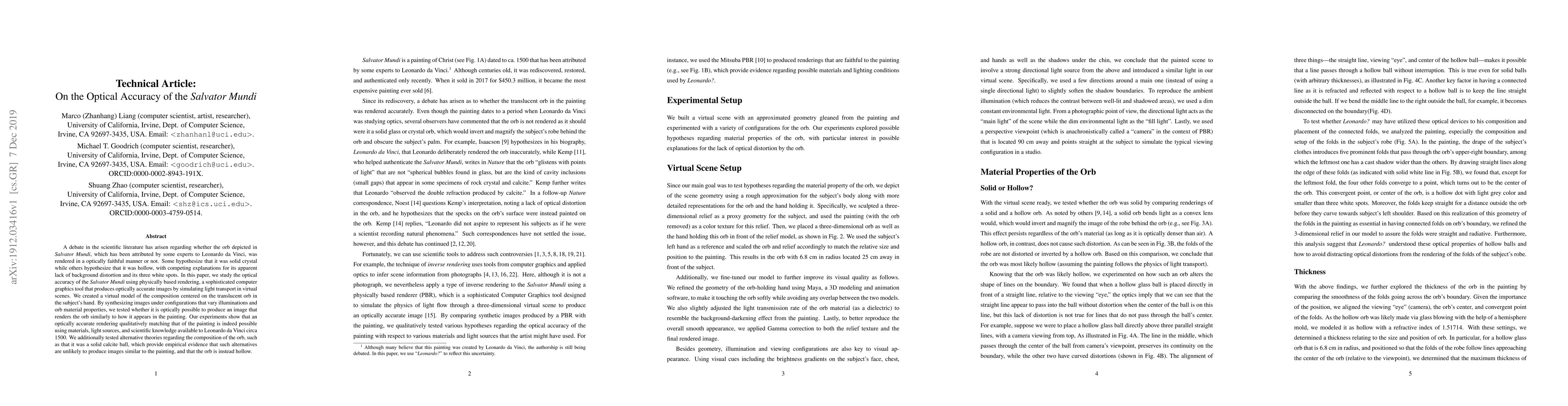 This paper investigates the optical accuracy of the orb in Leonardo da Vinci's Salvator Mundi using physically based rendering, concluding that the orb's depiction is consistent with materials and techniques available in the 1500s, supporting the hypothesis that it was hollow. Alternative theories, like the orb being a solid calcite ball, were found to be unlikely.