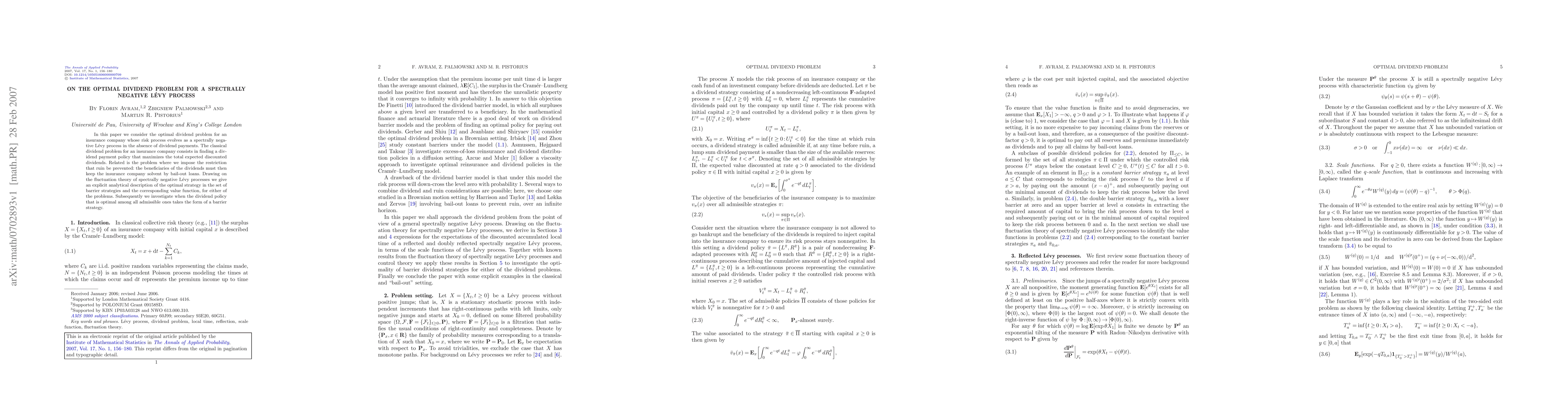 This paper explores the optimal dividend problem for an insurance company modeled by a spectrally negative Lévy process, focusing on maximizing discounted dividends while preventing ruin. It provides an explicit analytical solution for the optimal barrier strategy and examines when this strategy is optimal.