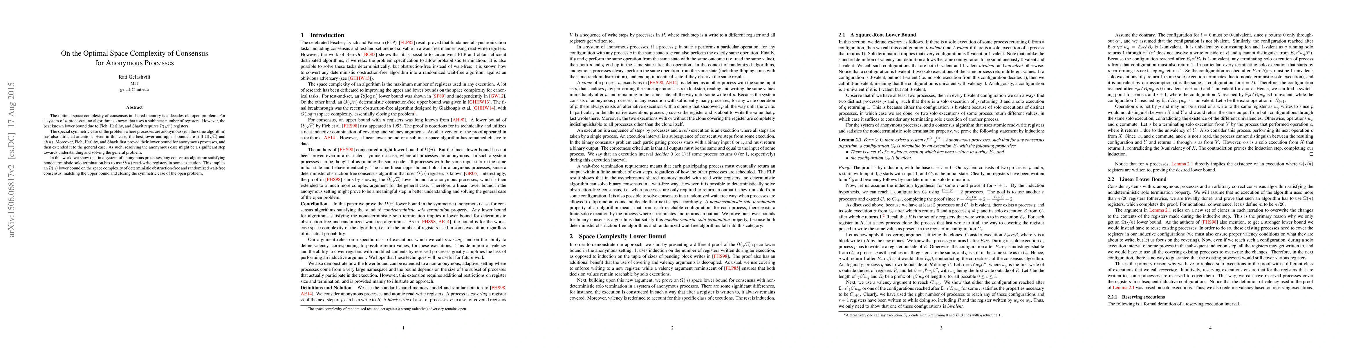 Researchers have shown that in a system of anonymous processes, consensus algorithms must use at least π(n) read-write registers in some execution, resolving the symmetric case of the open problem.
