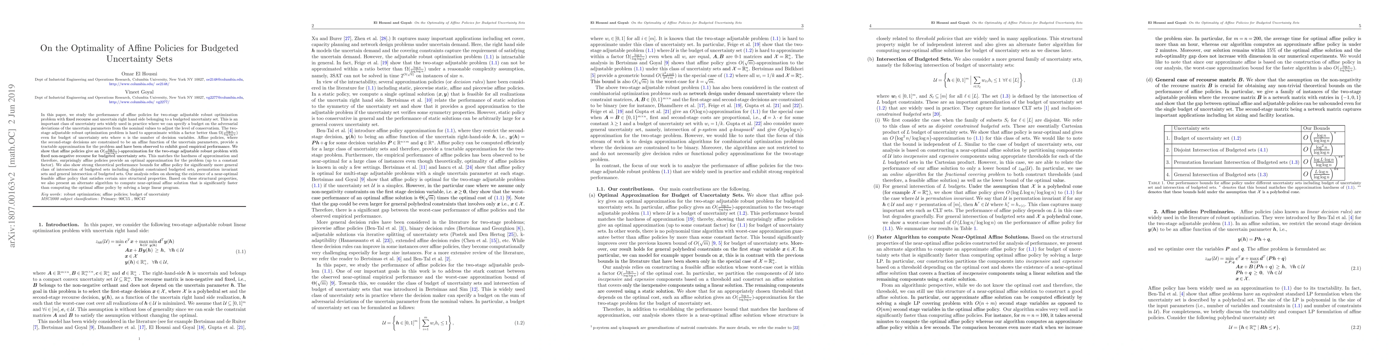 This paper demonstrates that affine policies provide an optimal approximation for two-stage adjustable robust optimization problems with fixed recourse and budgeted uncertainty sets, achieving an $O\left( \frac{\log n}{\log \log n} \right)$-approximation, matching the problem's inherent hardness. The authors also propose a faster algorithm for computing near-optimal affine solutions.
