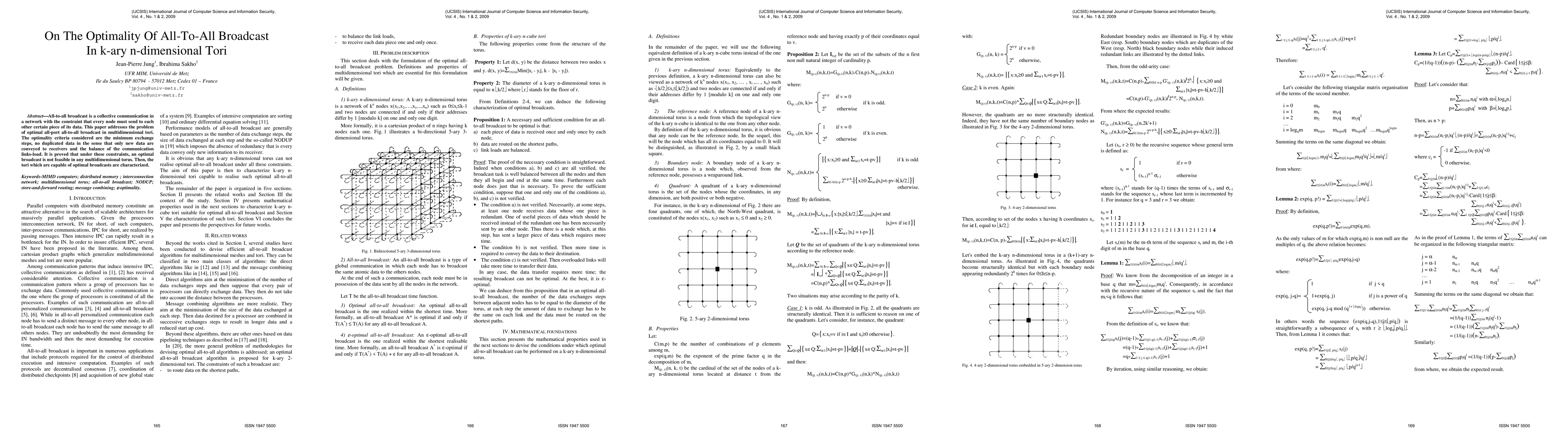 All to all broadcast is a collective communication in a network with the constraint that every node must send to each other certain piece of its data. This paper addresses the problem of optimal all port all to all broadcast in multidimensional tori. The optimality criteria considered are the minimum exchange steps, no duplicated data in the sense that only new data are conveyed to receivers and the balance of the communication links load. It is proved that under these constraints, an optimal broadcast is not feasible in any multidimensional torus. Then, the tori which are capable of optimal broadcasts are characterized.