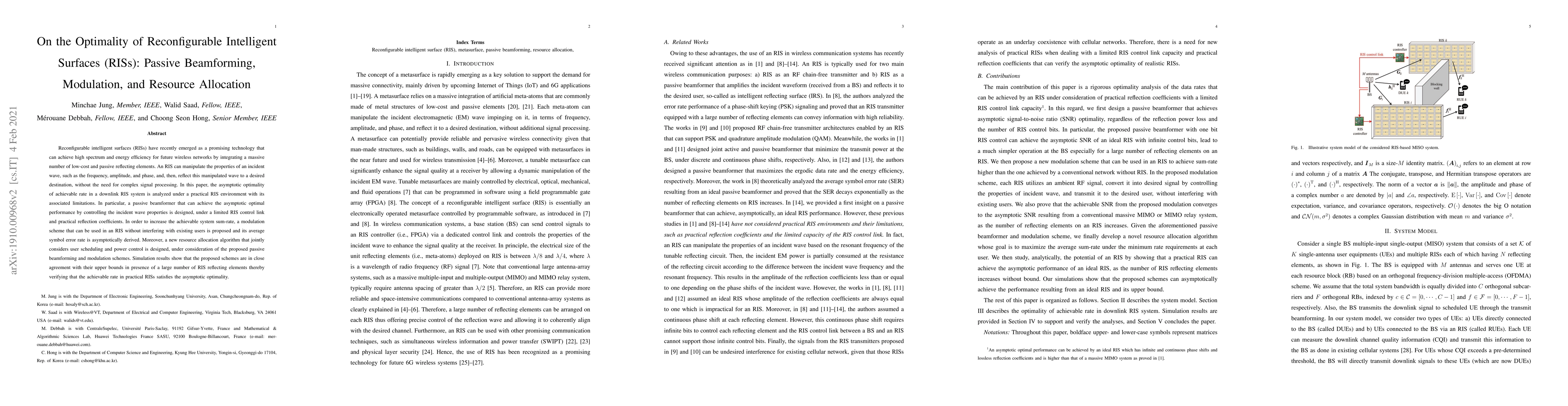 A study analyzes the optimality of reconfigurable intelligent surfaces (RISs) in wireless networks, proposing passive beamforming, modulation, and resource allocation schemes to achieve high efficiency and verify asymptotic optimality through simulation results.