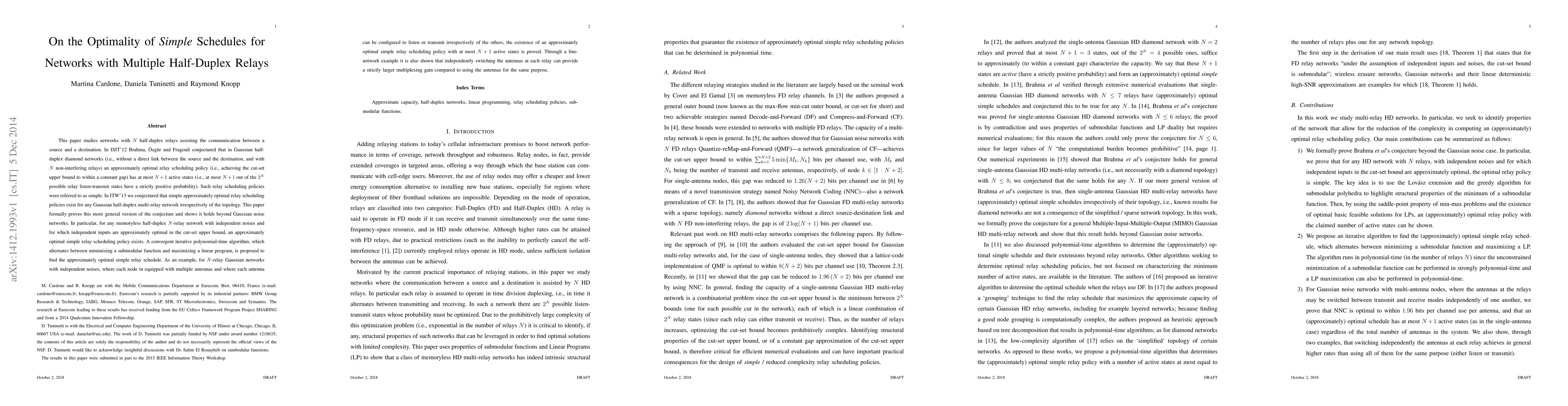This paper studies networks with N half-duplex relays assisting the communication between a source and a destination. In ISIT'12 Brahma, \"{O}zg\"{u}r and Fragouli conjectured that in Gaussian half-duplex diamond networks (i.e., without a direct link between the source and the destination, and with N non-interfering relays) an approximately optimal relay scheduling policy (i.e., achieving the cut-set upper bound to within a constant gap) has at most N+1 active states (i.e., at most N+1 out of the $2^N$ possible relay listen-transmit states have a strictly positive probability). Such relay scheduling policies were referred to as simple. In ITW'13 we conjectured that simple approximately optimal relay scheduling policies exist for any Gaussian half-duplex multi-relay network irrespectively of the topology. This paper formally proves this more general version of the conjecture and shows it holds beyond Gaussian noise networks. In particular, for any memoryless half-duplex N-relay network with independent noises and for which independent inputs are approximately optimal in the cut-set upper bound, an approximately optimal simple relay scheduling policy exists. A convergent iterative polynomial-time algorithm, which alternates between minimizing a submodular function and maximizing a linear program, is proposed to find the approximately optimal simple relay schedule. As an example, for N-relay Gaussian networks with independent noises, where each node in equipped with multiple antennas and where each antenna can be configured to listen or transmit irrespectively of the others, the existence of an approximately optimal simple relay scheduling policy with at most N+1 active states is proved. Through a line-network example it is also shown that independently switching the antennas at each relay can provide a strictly larger multiplexing gain compared to using the antennas for the same purpose.