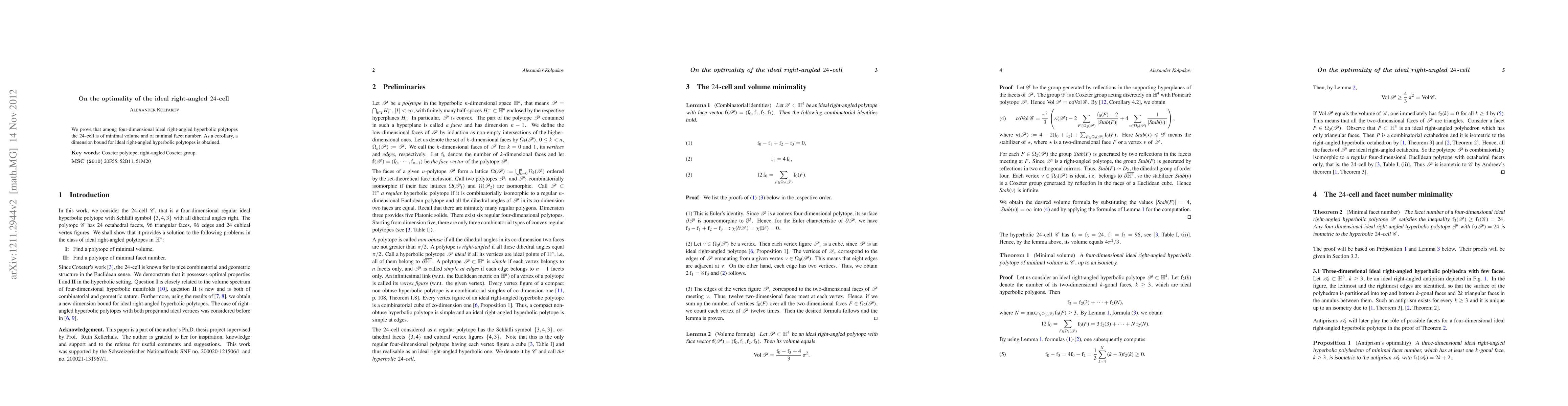 We prove that among four-dimensional ideal right-angled hyperbolic polytopes the 24-cell is of minimal volume and of minimal facet number. As a corollary, a dimension bound for ideal right-angled hyperbolic polytopes is obtained.