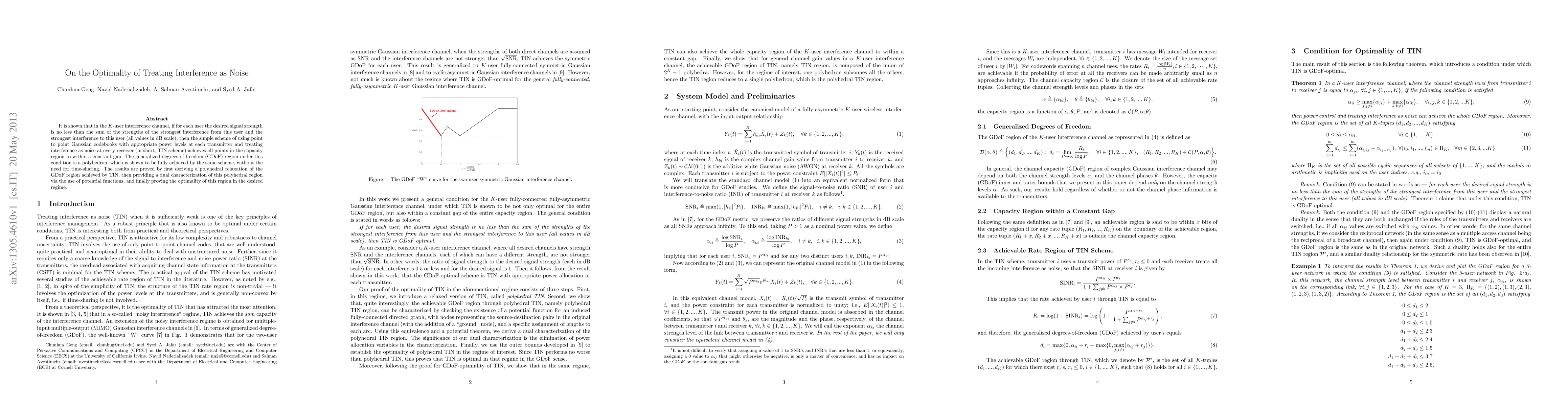 It is shown that in the K-user interference channel, if for each user the desired signal strength is no less than the sum of the strengths of the strongest interference from this user and the strongest interference to this user (all values in dB scale), then the simple scheme of using point to point Gaussian codebooks with appropriate power levels at each transmitter and treating interference as noise at every receiver (in short, TIN scheme) achieves all points in the capacity region to within a constant gap. The generalized degrees of freedom (GDoF) region under this condition is a polyhedron, which is shown to be fully achieved by the same scheme, without the need for time-sharing. The results are proved by first deriving a polyhedral relaxation of the GDoF region achieved by TIN, then providing a dual characterization of this polyhedral region via the use of potential functions, and finally proving the optimality of this region in the desired regime.