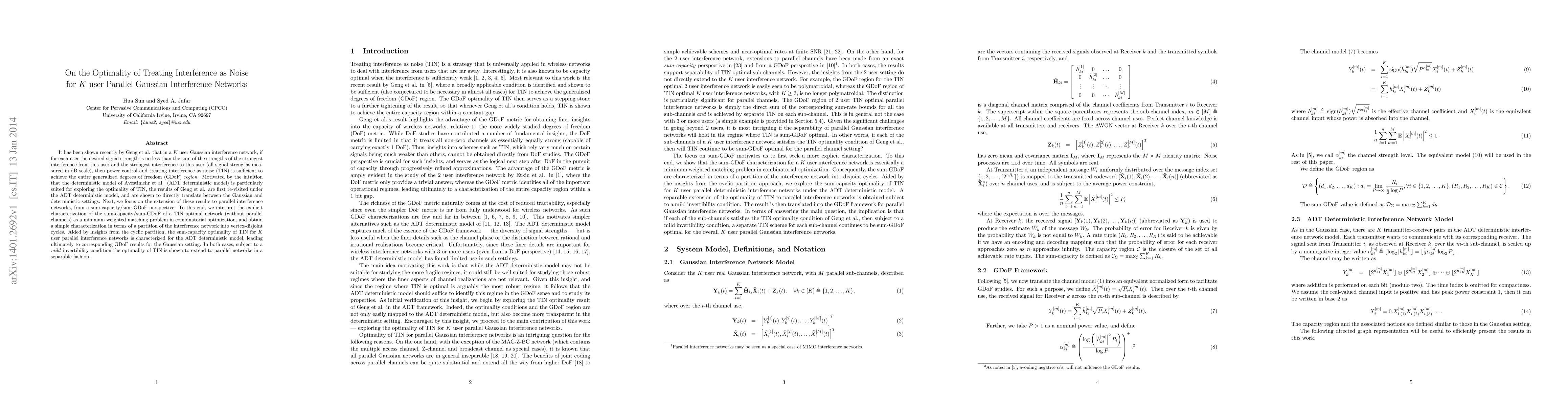 Researchers show that treating interference as noise is optimal for K-user parallel Gaussian interference networks under certain conditions, achieving the entire generalized degrees of freedom region.