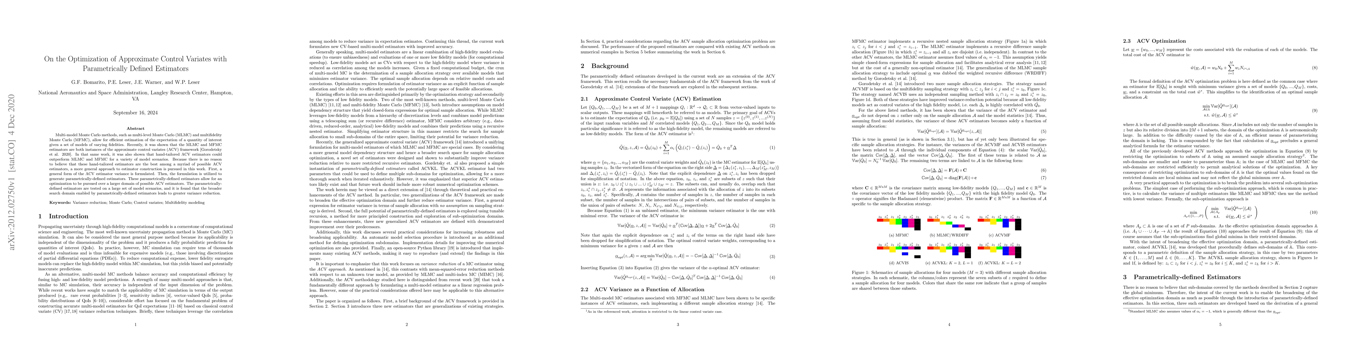 This paper explores the optimization of approximate control variates (ACV) using parametrically-defined estimators within multi-model Monte Carlo methods. The study finds that these optimized estimators outperform traditional methods like MLMC and MFMC, achieving greater variance reduction across various model scenarios.