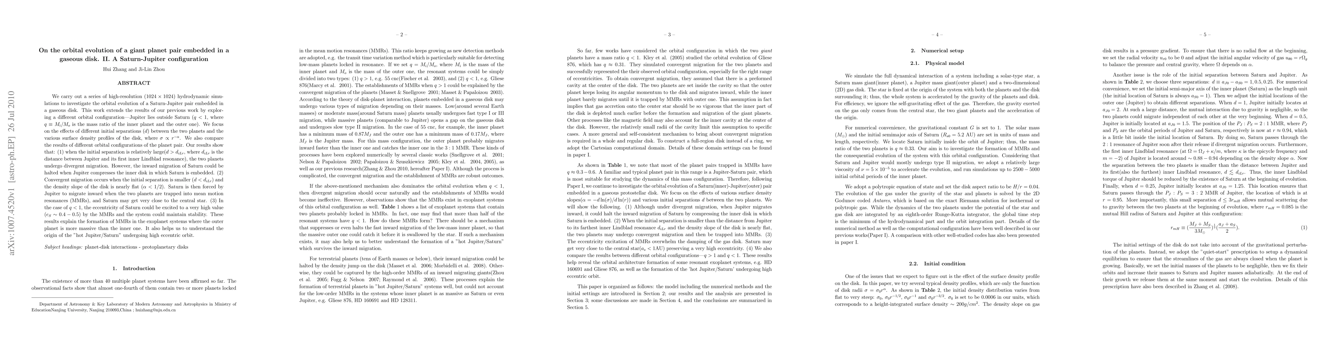 when Jupiter compresses the inner disk in which Saturn is embedded. (2)