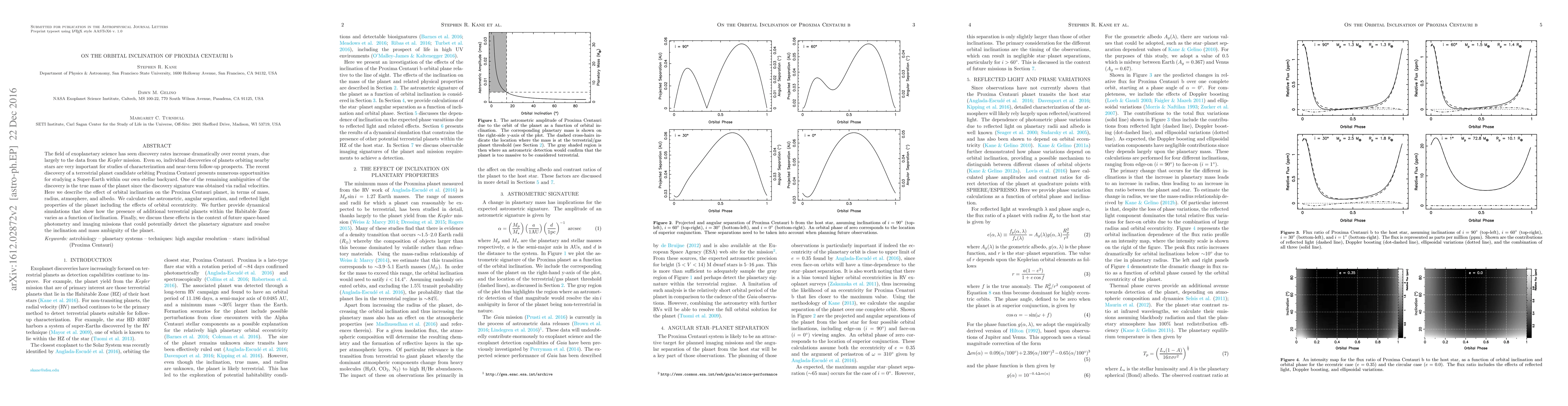 The field of exoplanetary science has seen discovery rates increase dramatically over recent years, due largely to the data from the Kepler mission. Even so, individual discoveries of planets orbiting nearby stars are very important for studies of characterization and near-term follow-up prospects. The recent discovery of a terrestrial planet candidate orbiting Proxima Centauri presents numerous opportunities for studying a Super-Earth within our own stellar backyard. One of the remaining ambiguities of the discovery is the true mass of the planet since the discovery signature was obtained via radial velocities. Here we describe the effect of orbital inclination on the Proxima Centauri planet, in terms of mass, radius, atmosphere, and albedo. We calculate the astrometric, angular separation, and reflected light properties of the planet including the effects of orbital eccentricity. We further provide dynamical simulations that show how the presence of additional terrestrial planets within the Habitable Zone varies as a function of inclination. Finally, we discuss these effects in the context of future space-based photometry and imaging missions that could potentially detect the planetary signature and resolve the inclination and mass ambiguity of the planet.