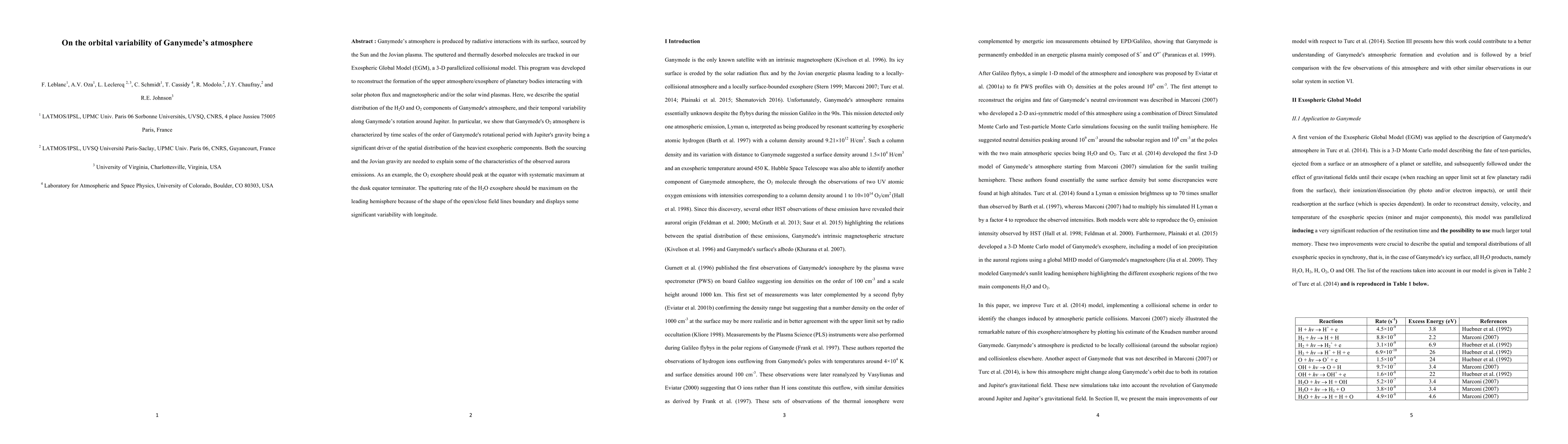 Ganymede's atmosphere varies in composition and distribution with its rotation around Jupiter, driven by solar radiation and gravitational forces.