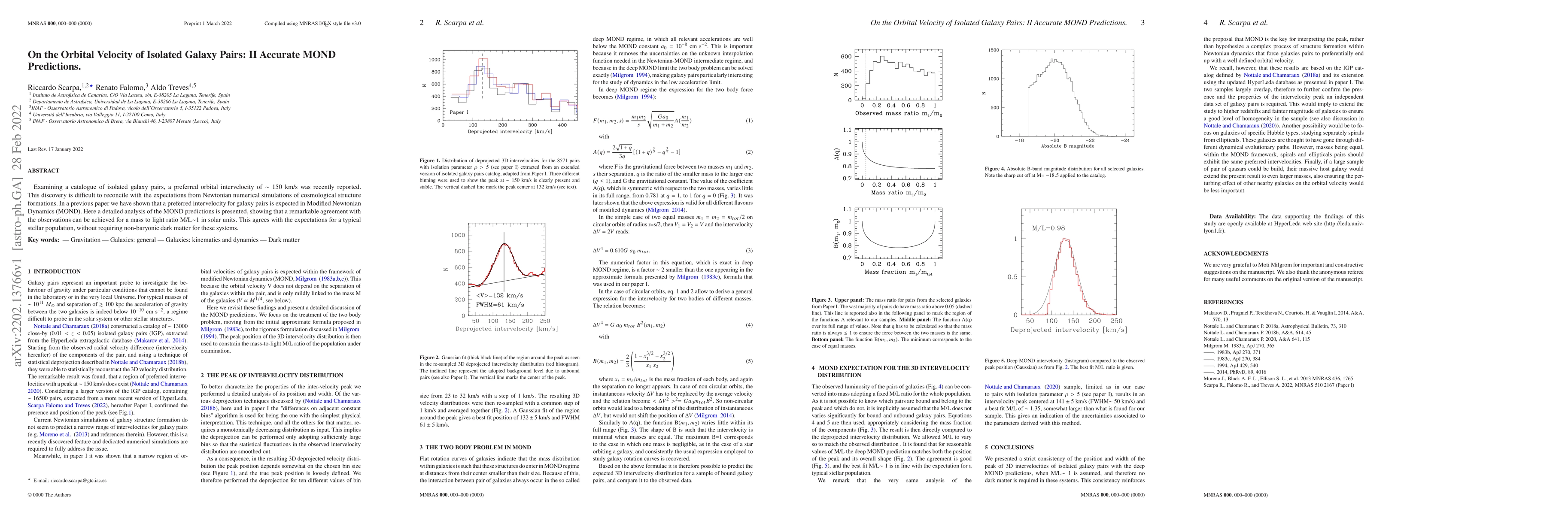Examining a catalogue of isolated galaxy pairs, a preferred orbital intervelocity of ~150 km/s was recently reported. This discovery is difficult to reconcile with the expectations from Newtonian numerical simulations of cosmological structure formations. In a previous paper we have shown that a preferred intervelocity for galaxy pairs is expected in Modified Newtonian Dynamics (MOND). Here a detailed analysis of the MOND predictions is presented, showing that a remarkable agreement with the observations can be achieved for a mass to light ratio M/L~1 in solar units. This agrees with the expectations for a typical stellar population, without requiring non-baryonic dark matter for these systems.