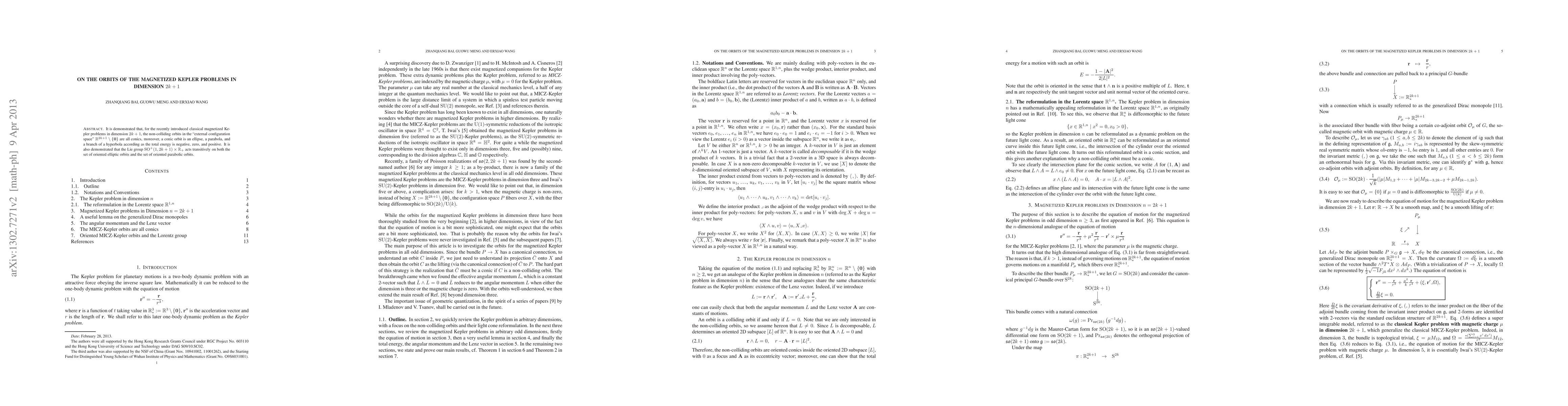 It is demonstrated that, for the recently introduced classical magnetized Kepler problems in dimension $2k+1$, the non-colliding orbits in the "external configuration space" $\mathbb R^{2k+1}\setminus\{\mathbf 0\}$ are all conics, moreover, a conic orbit is an ellipse, a parabola, and a branch of a hyperbola according as the total energy is negative, zero, and positive. It is also demonstrated that the Lie group ${\mr {SO}}^+(1,2k+1)\times {\bb R}_+$ acts transitively on both the set of oriented elliptic orbits and the set of oriented parabolic orbits.