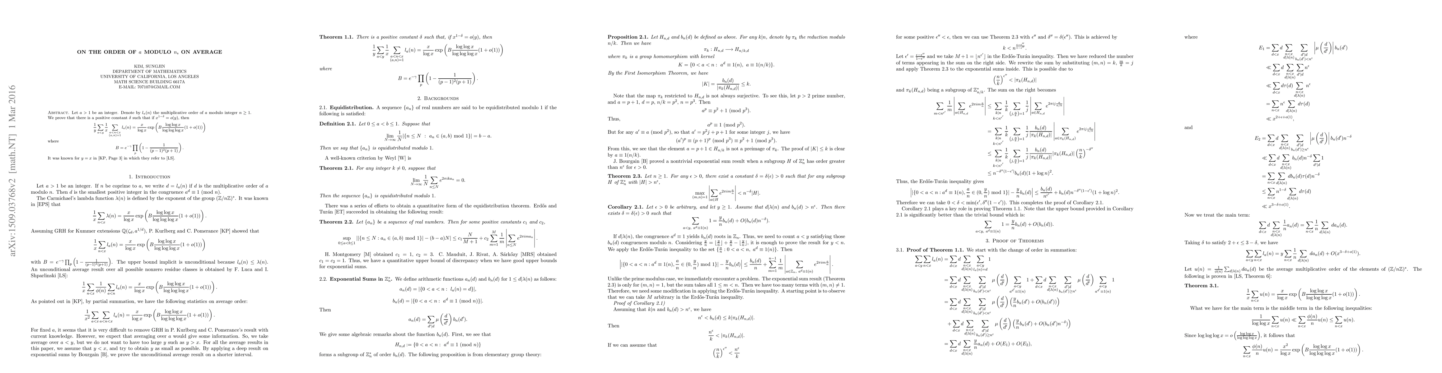 This paper improves upon a previous statement on the distribution of multiplicative order modulo n, showing that the average order of an integer a modulo n grows faster than initially thought, with implications for number theory and cryptography.