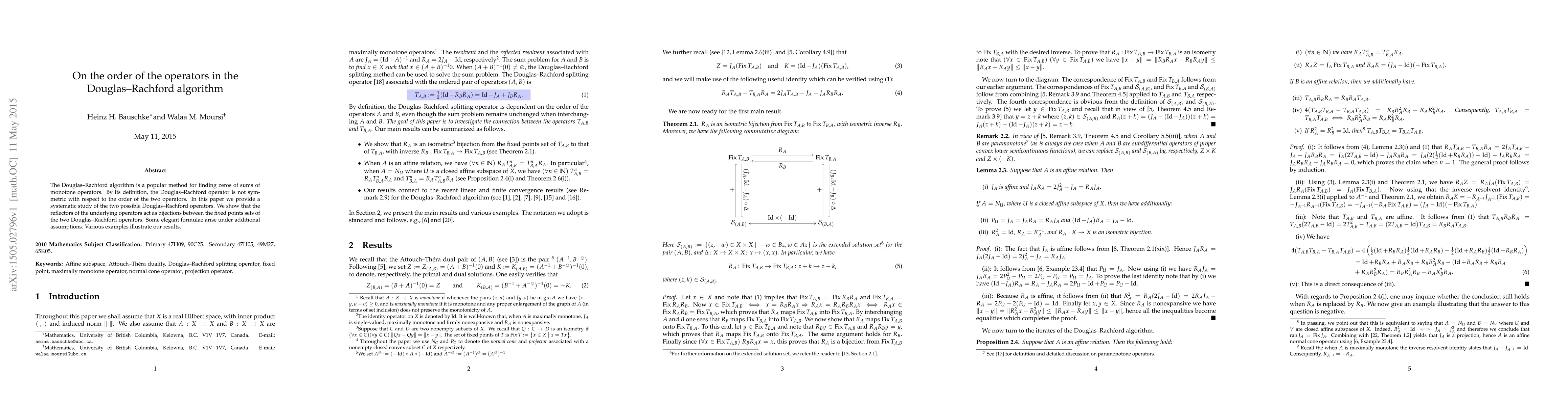 This paper systematically investigates the two possible orders of operators in the Douglas-Rachford algorithm, demonstrating that the reflectors of the underlying operators serve as bijections between the fixed point sets of the two variants. Elegant formulae emerge under additional assumptions, supported by illustrative examples.