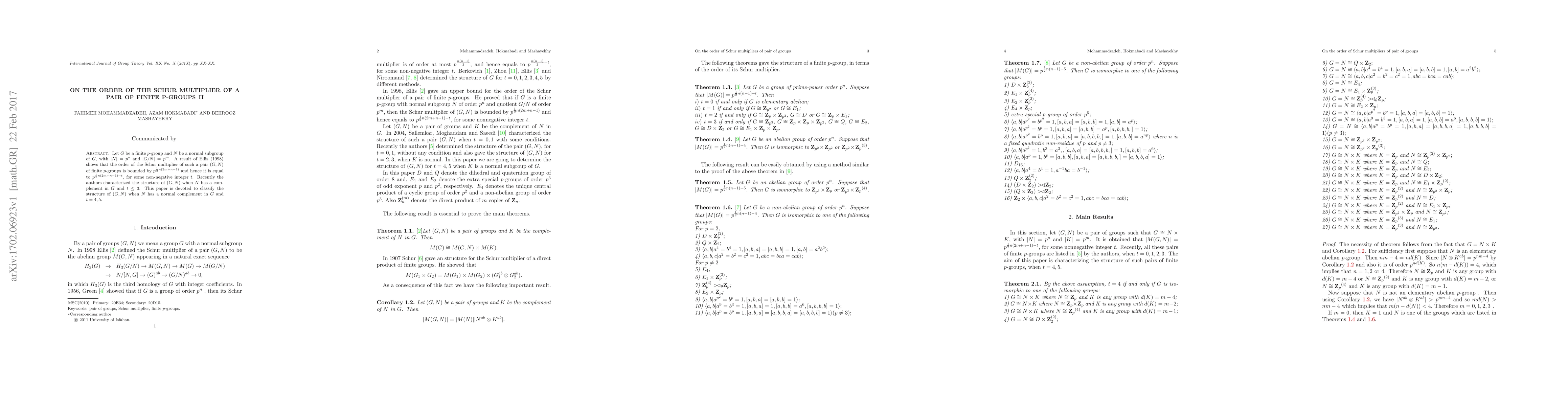 Let $G$ be a finite $p$-group and $N$ be a normal subgroup of $G$, with $|N|=p^n$ and $|G/N|=p^m$. A result of Ellis (1998) shows that the order of the Schur multiplier of such a pair $(G,N)$ of finite $p$-groups is bounded by $ p^{\frac{1}{2}n(2m+n-1)}$ and hence it is equal to $ p^{\frac{1}{2}n(2m+n-1)-t}$, for some non-negative integer $t$. Recently the authors characterized the structure of $(G,N)$ when $N$ has a complement in $G$ and $t\leq 3$. This paper is devoted to classify the structure of $(G,N)$ when $N$ has a normal complement in $G$ and $t=4,5$.
