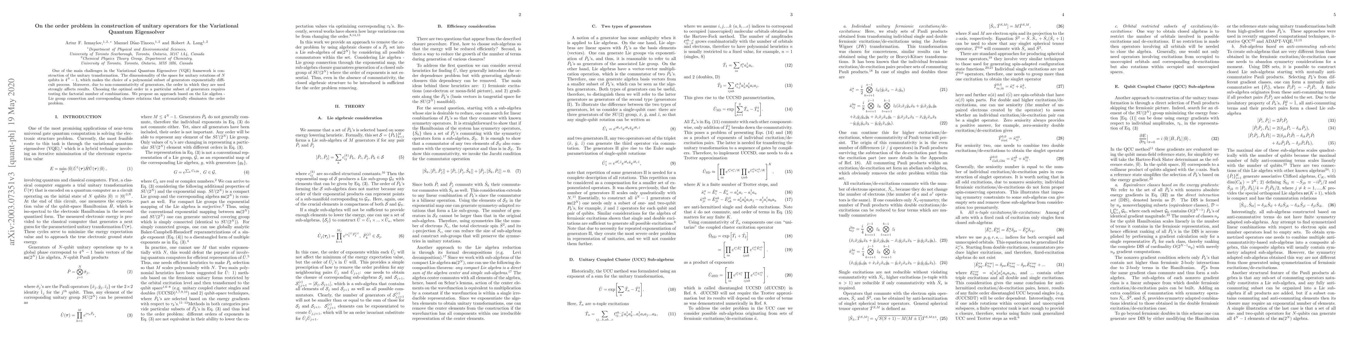One of the main challenges in the Variational Quantum Eigensolver (VQE) framework is construction of the unitary transformation. The dimensionality of the space for unitary rotations of $N$ qubits is $4^N-1$, which makes the choice of a polynomial subset of generators exponentially difficult process. Moreover, due to non-commutativity of generators, the order in which they are used strongly affects results. Choosing the optimal order in a particular subset of generators requires testing the factorial number of combinations. We propose an approach based on the Lie algebra - Lie group connection and corresponding closure relations that systematically eliminates the order problem.