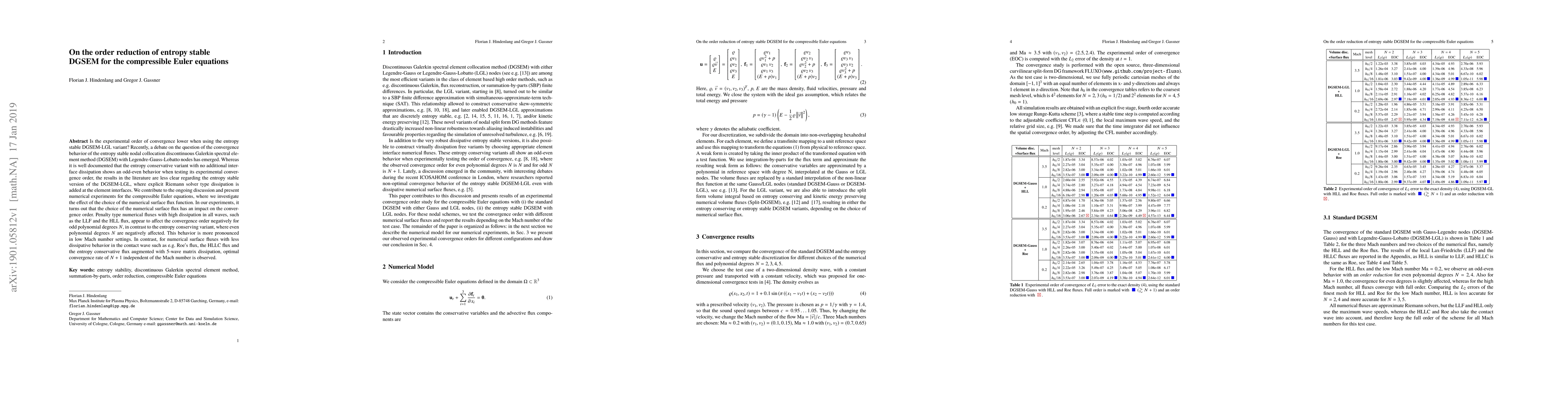 Is the experimental order of convergence lower when using the entropy stable DGSEM-LGL variant? Recently, a debate on the question of the convergence behavior of the entropy stable nodal collocation discontinuous Galerkin spectral element method (DGSEM) with Legendre-Gauss-Lobatto nodes has emerged. Whereas it is well documented that the entropy conservative variant with no additional interface dissipation shows an odd-even behavior when testing its experimental convergence order, the results in the literature are less clear regarding the entropy stable version of the DGSEM-LGL, where explicit Riemann solver type dissipation is added at the element interfaces. We contribute to the ongoing discussion and present numerical experiments for the compressible Euler equations, where we investigate the effect of the choice of the numerical surface flux function. In our experiments, it turns out that the choice of the numerical surface flux has an impact on the convergence order. Penalty type numerical fluxes with high dissipation in all waves, such as the LLF and the HLL flux, appear to affect the convergence order negatively for odd polynomial degrees $N$, in contrast to the entropy conserving variant, where even polynomial degrees $N$ are negatively affected. This behavior is more pronounced in low Mach number settings. In contrast, for numerical surface fluxes with less dissipative behavior in the contact wave such as e.g. Roe's flux, the HLLC flux and the entropy conservative flux augmented with 5-wave matrix dissipation, optimal convergence rate of $N+1$ independent of the Mach number is observed.