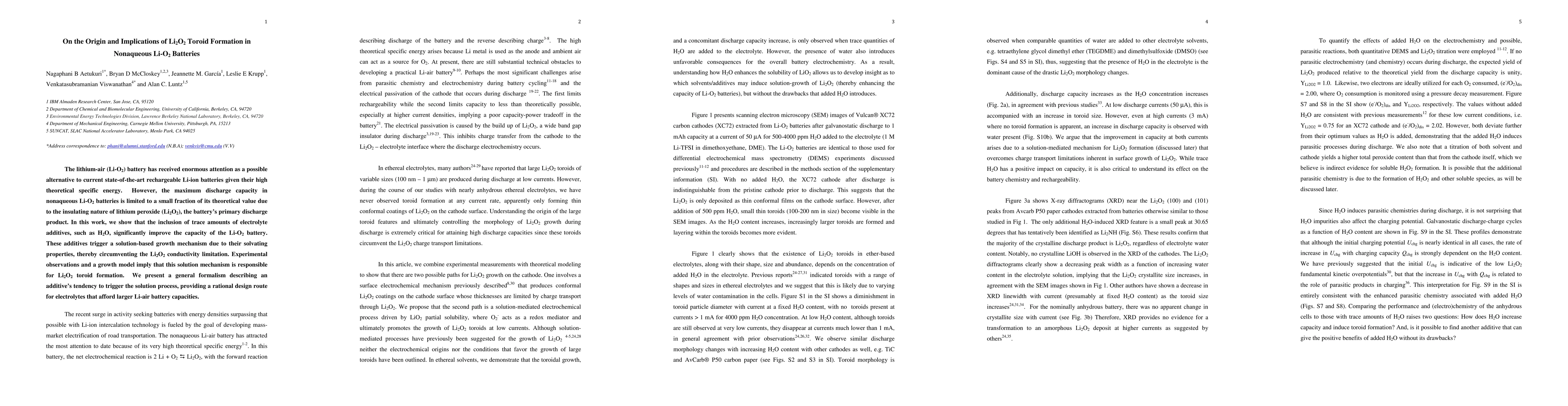This paper investigates the formation of Li$_2$O$_2$ toroids in Li-O$_2$ batteries, revealing that trace electrolyte additives like H$_2$O enhance battery capacity by promoting a solution-based growth mechanism that overcomes the insulating nature of Li$_2$O$_2$. The study provides a model for designing electrolytes to improve Li-air battery performance.