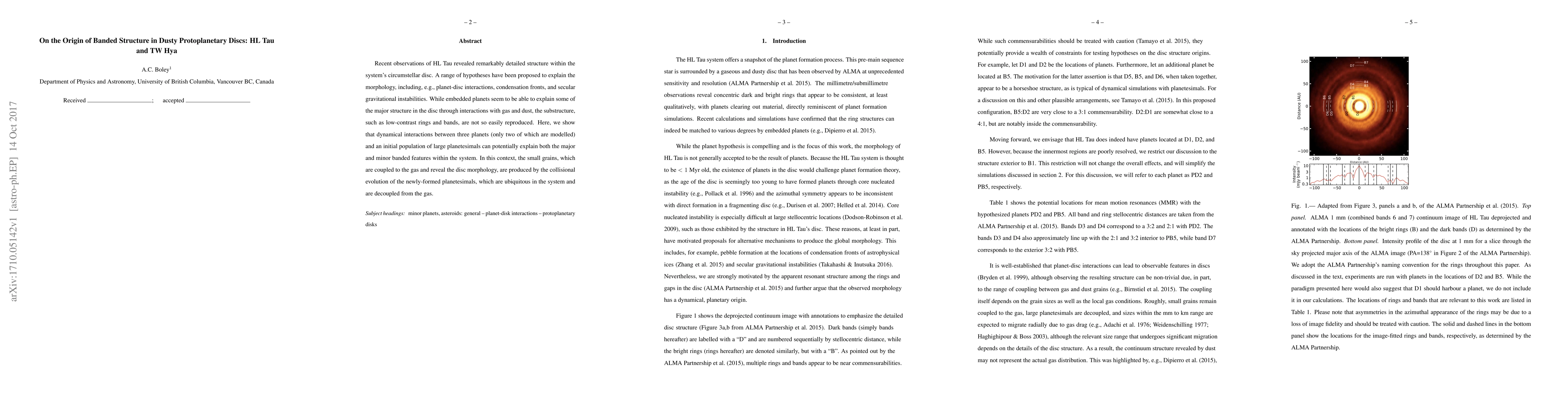 This paper investigates the banded structure in HL Tau's protoplanetary disc, proposing that interactions between three planets and planetesimals can explain both major and minor features. Small grains, formed by planetesimal collisions, reveal the disc's morphology, while larger planetesimals remain decoupled from the gas.