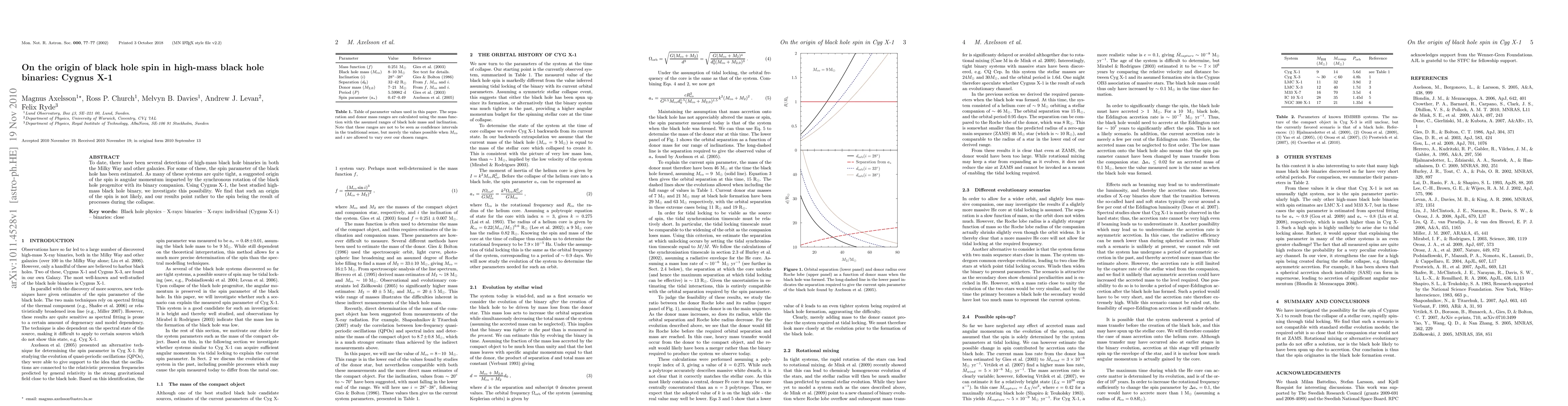 To date, there have been several detections of high-mass black hole binaries in both the Milky Way and other galaxies. For some of these, the spin parameter of the black hole has been estimated. As many of these systems are quite tight, a suggested origin of the spin is angular momentum imparted by the synchronous rotation of the black hole progenitor with its binary companion. Using Cygnus X-1, the best studied high-mass black hole binary, we investigate this possibility. We find that such an origin of the spin is not likely, and our results point rather to the spin being the result of processes during the collapse.